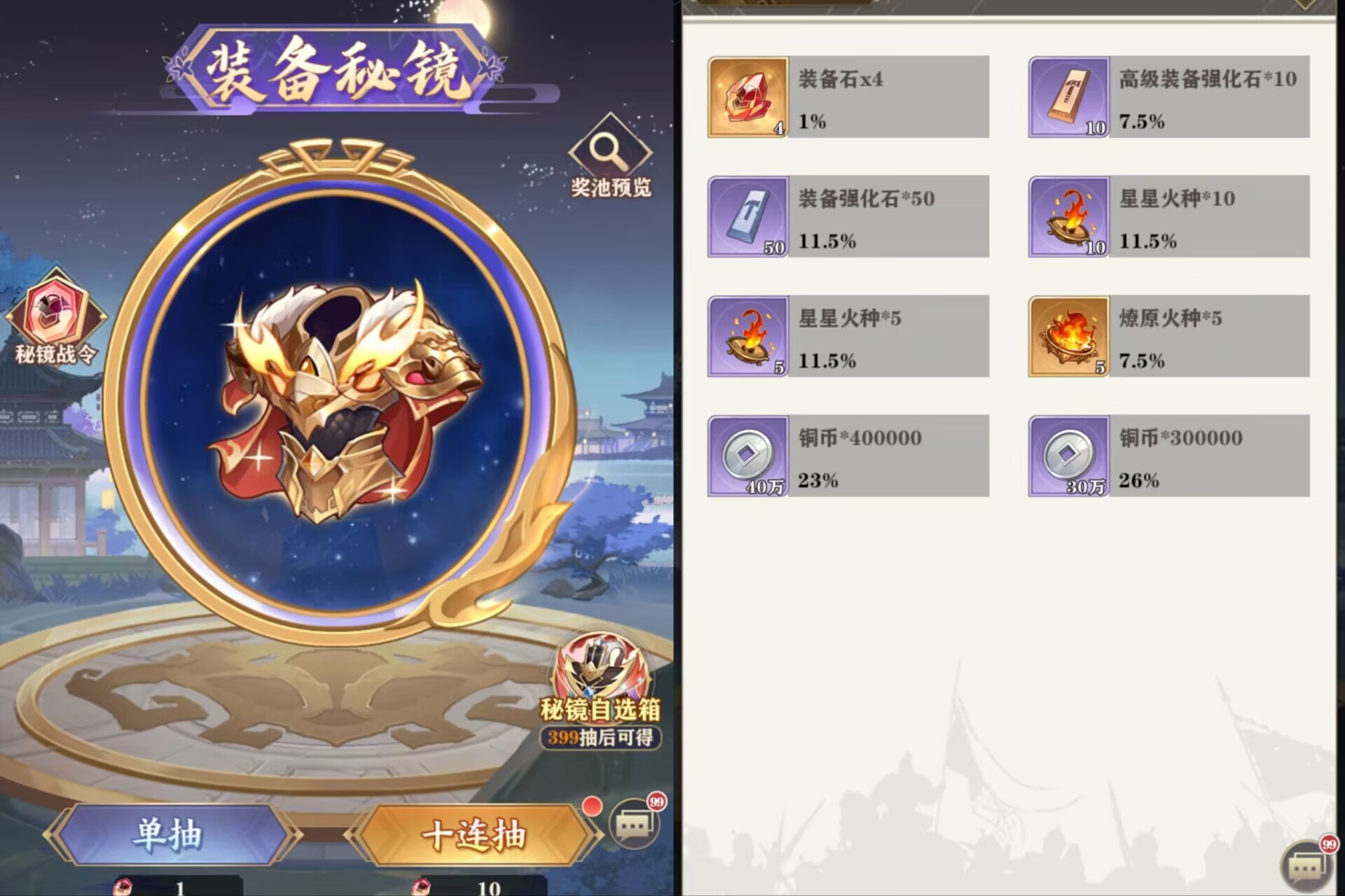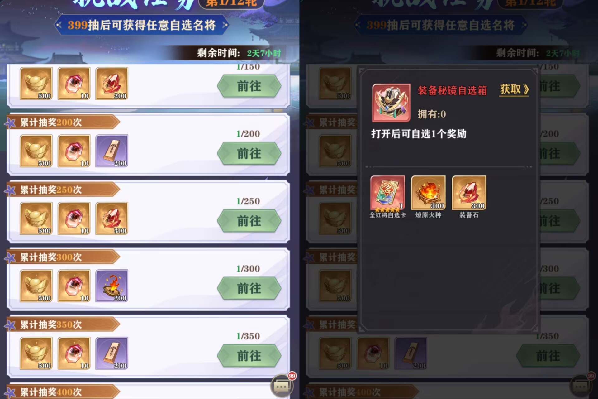 参加建议:肯定是最少存到400抽在来参加这个活动,这是基础,400抽可以送【装备秘境自选卡】里面包含:红将自选和300个火种+300装备石。