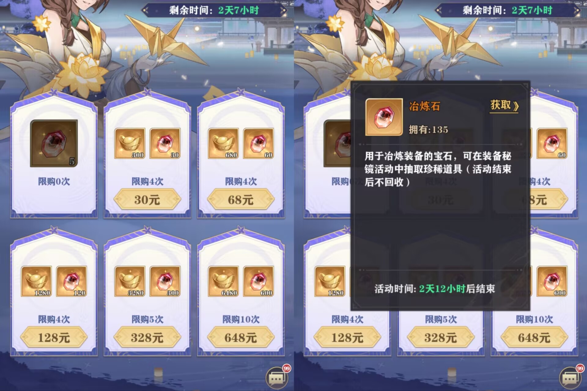 目前【冶炼石】只有这三个获取途径,在不氪金的前提下想囤冶炼石不是件容易的事,所以平民玩家这个活动尽量存够冶炼石在参加。