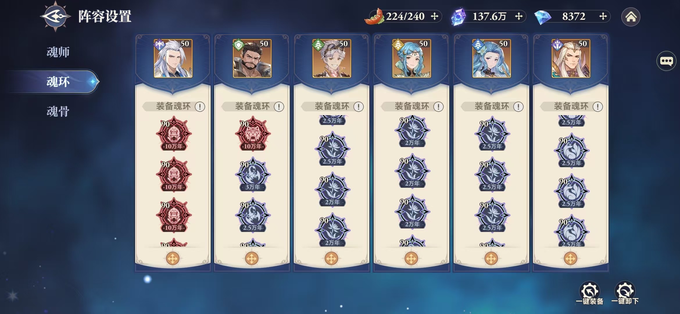 阿银、唐月华等辅助魂师第二魂环、第五魂环选择爬行系,其他为植物系,增加对位敌人受到的伤害和灼烧。
