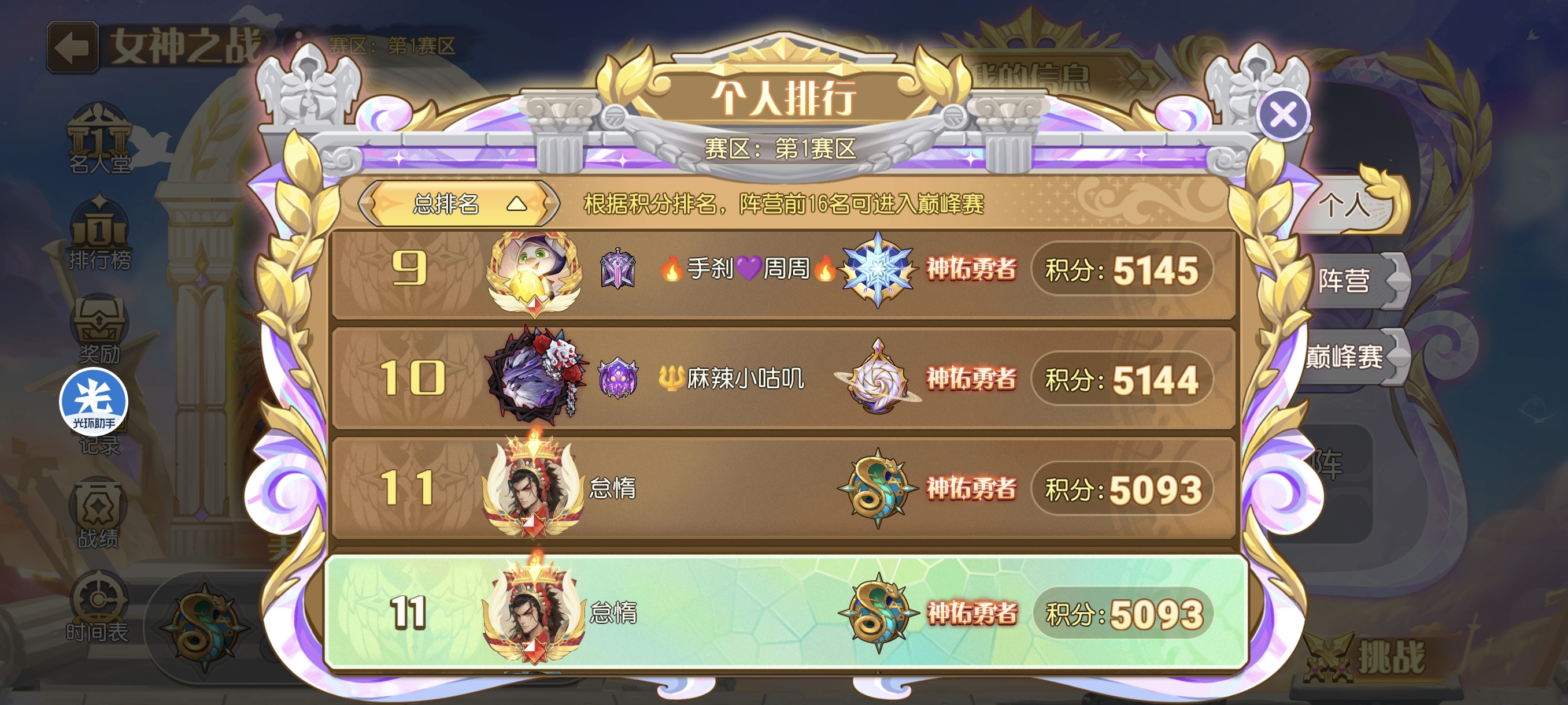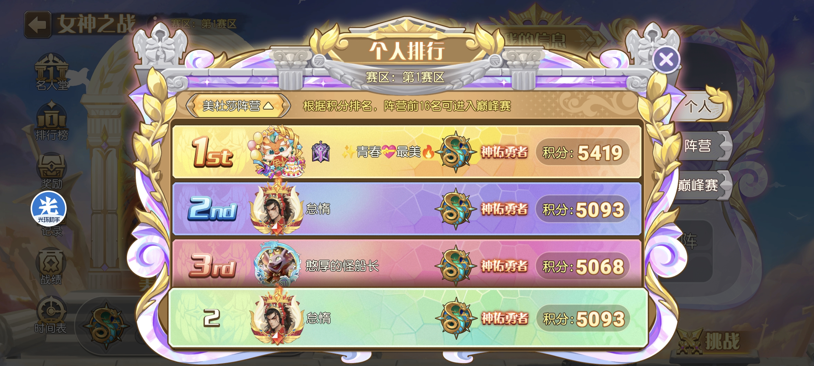 下面是先锋服女神之战前几名的阵容,大家可以参考一下。