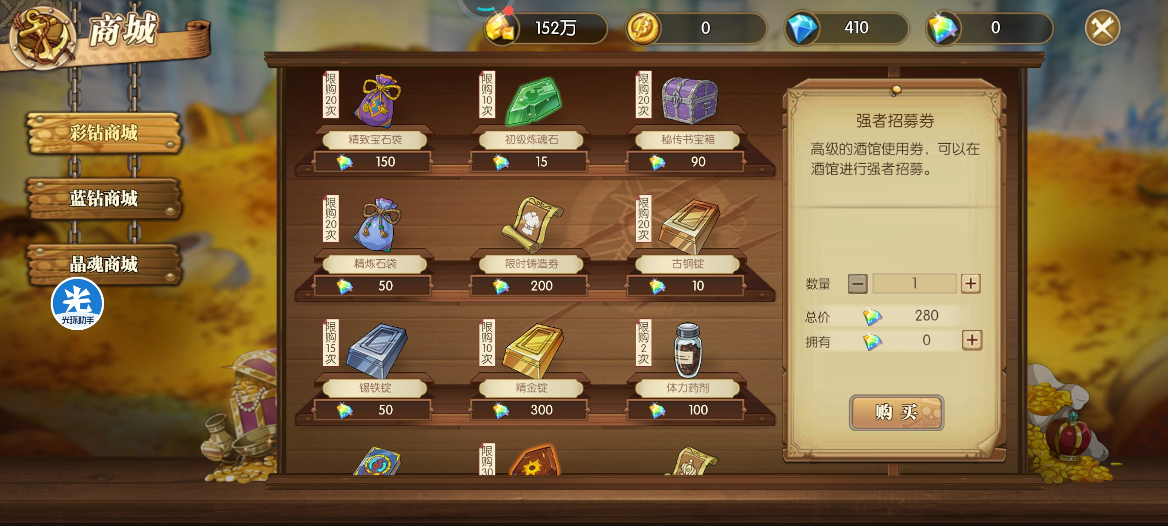 拿最近一次的活动来说,15万积分就可以开启装备铸造券的兑换,门槛并不高,相信不少伙伴已经拿到10张装备铸造券了吧。3、彩钻商店购买