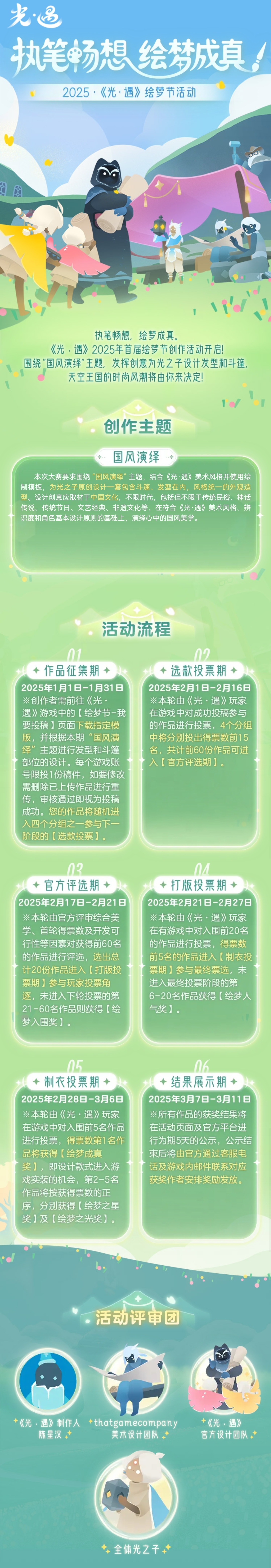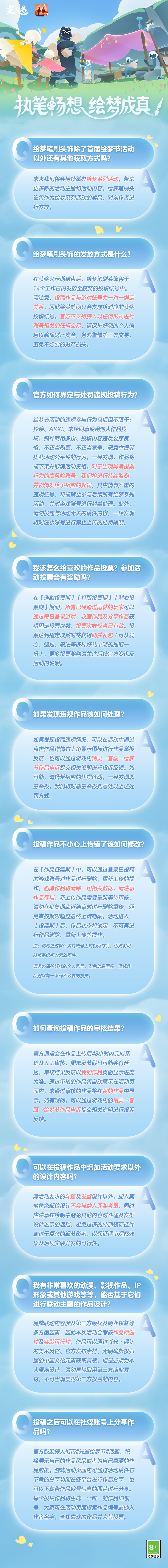 笔绘风华 国韵共赏|《光·遇》绘梦节Q&A是泽哦发布于 2024-12-31关注《光·遇》首届绘梦节活动开启在即小光留意到旅人们对本次活动存在诸多疑问请查收这份小光准备的Q&A共同维护和谐友好的活动氛围吧~参与活动前请阅读下方图片浏览详情🎨期待与你共执画笔同绘华夏千年之风