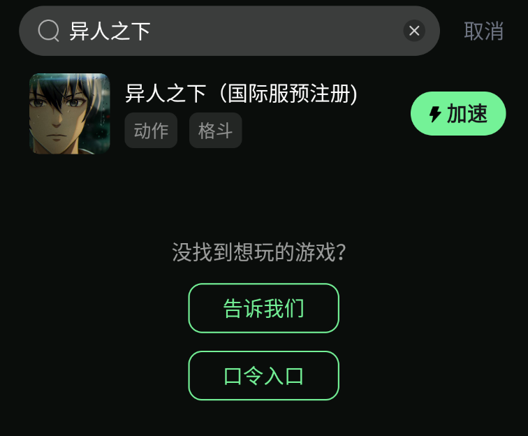 第三步:奇游内搜索【异人之下国际服】点击加速即可前往国际服官网预约测试资格!