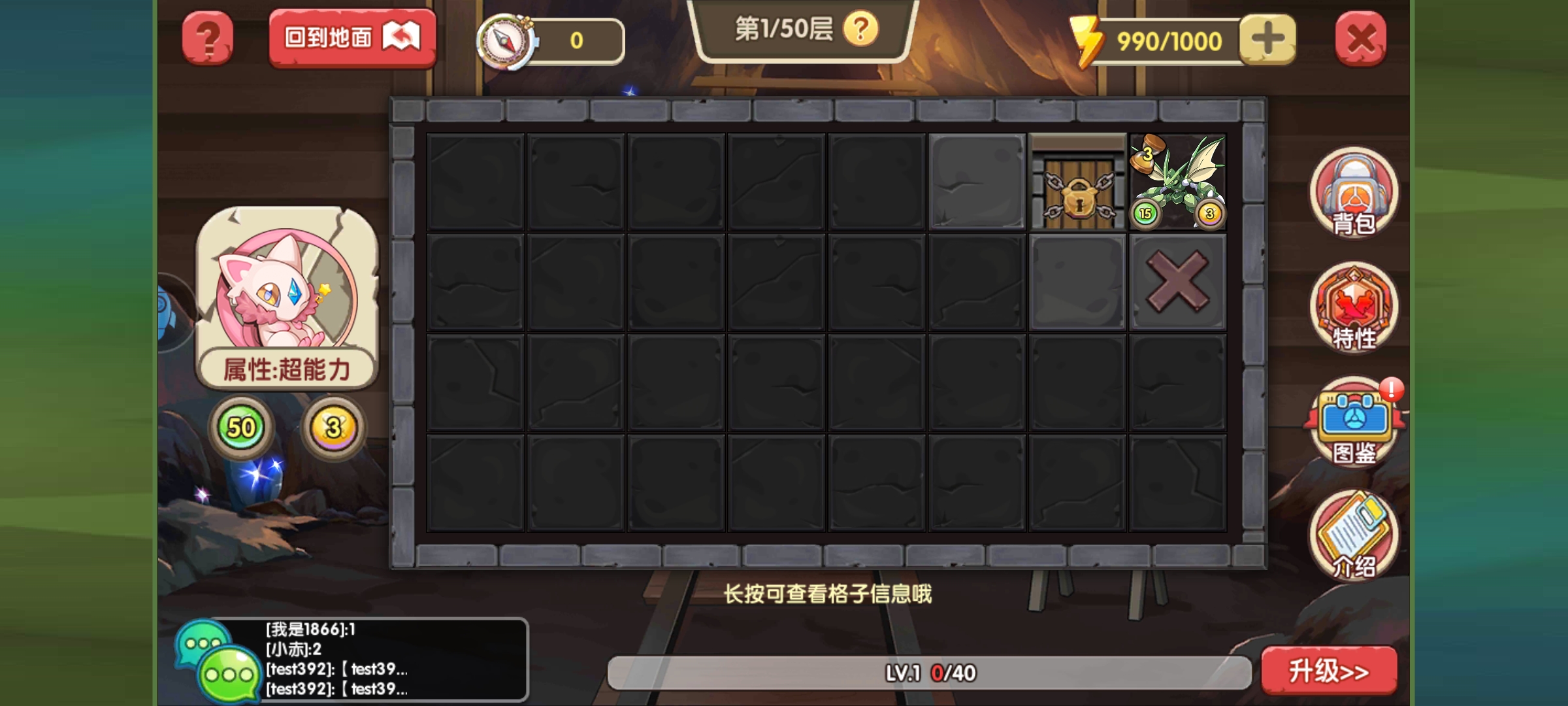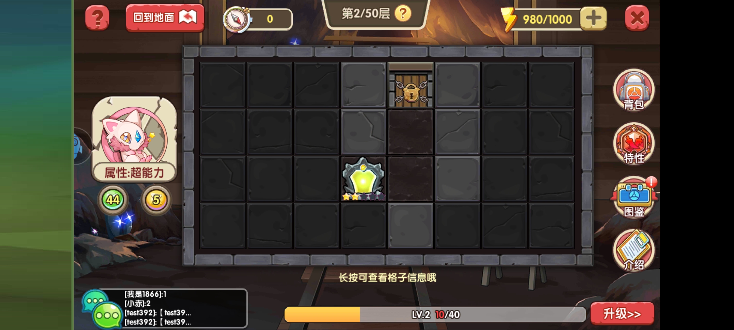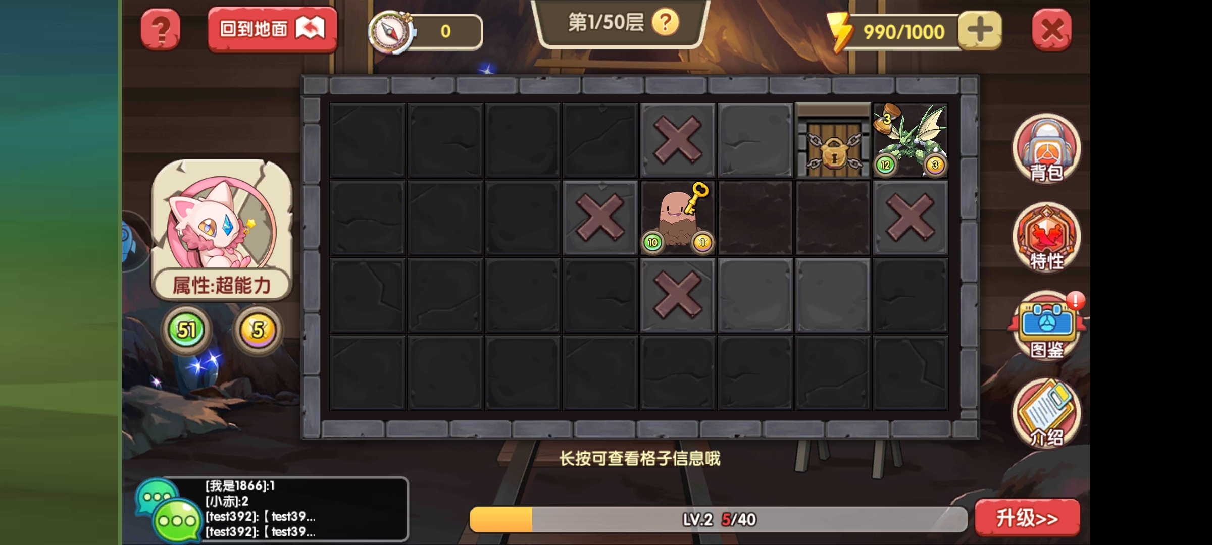 玩法和军棋类似,进来从门旁边的灰色开始点击,每点击一次花费一点体力,体力可以通过钻石买。