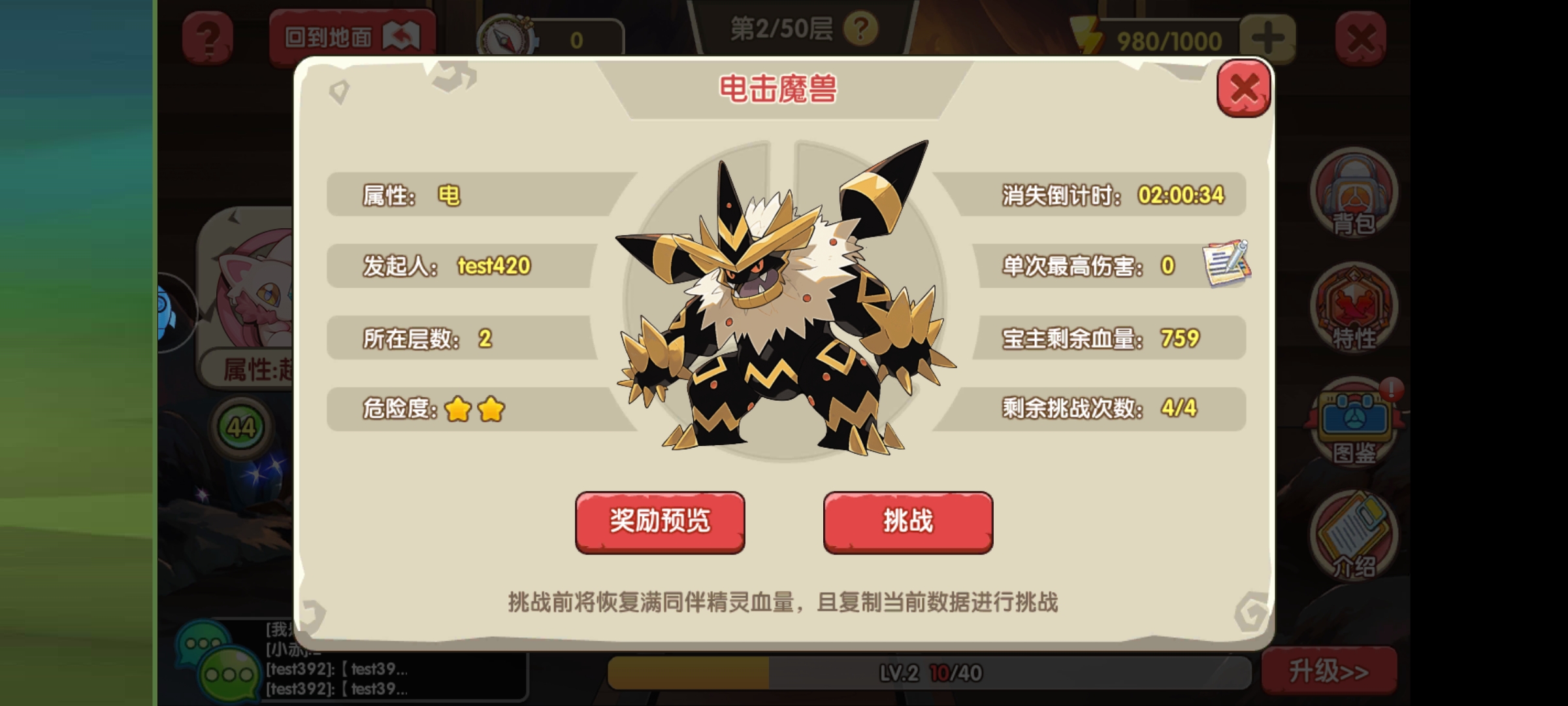 宝主血量和攻击都很高,单人一般打不死,不过可以分享出去,和队友一块打,打的伤害越高,给的奖励越高。