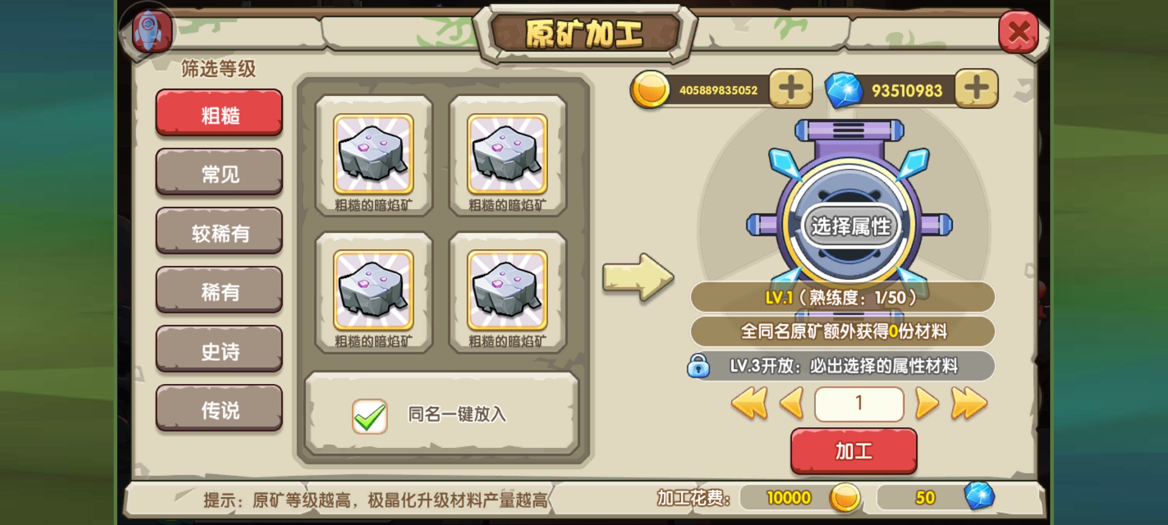 还有最重要一点就是材料获取,这里打到的不是成品,你还需要到左边材料加工这里加工成极晶碎片,才可以激活使用。