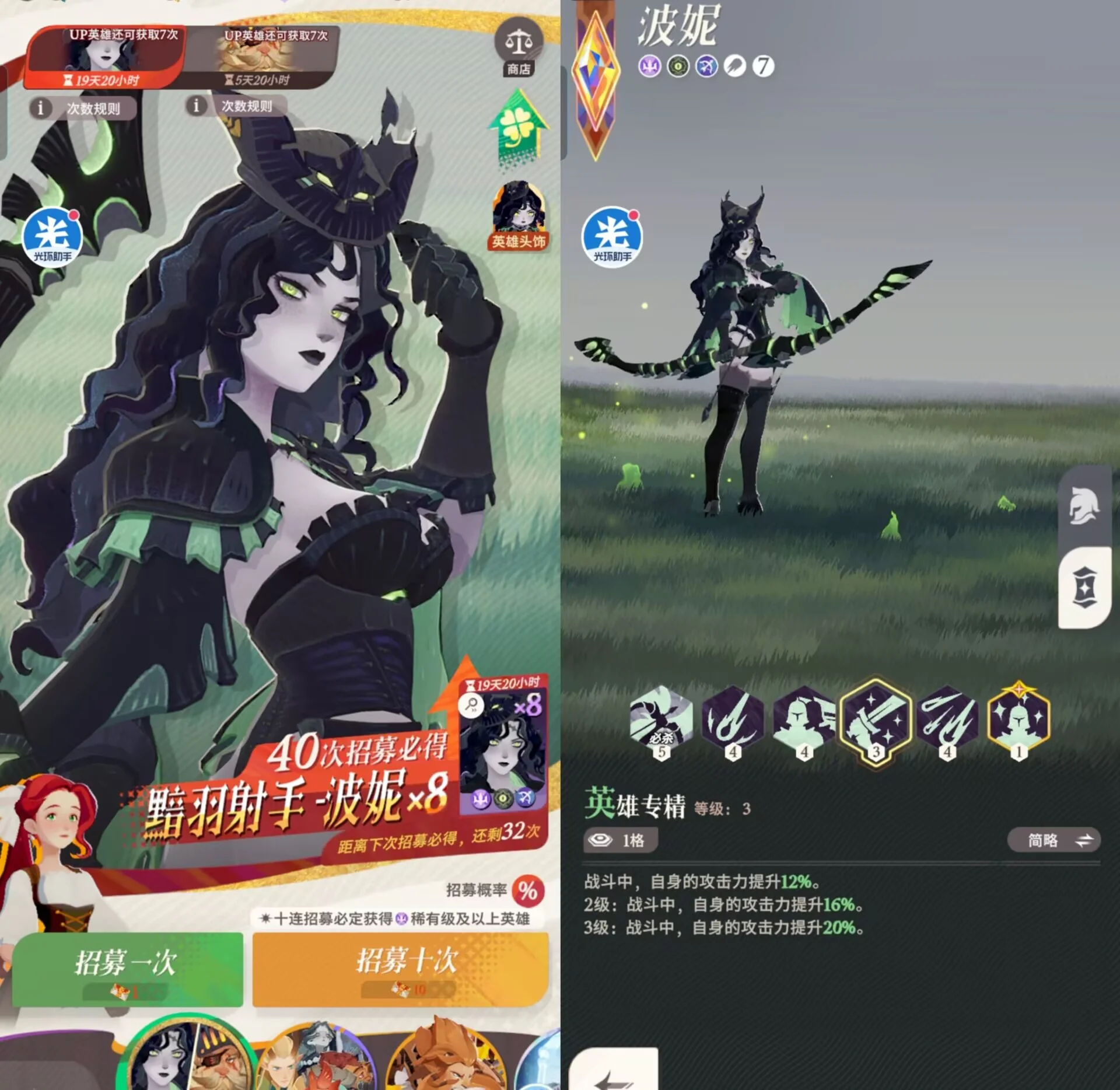 ③英雄专精。专精这个没啥好说的,因为大家的专精都差不多,提升波妮20%攻击力!