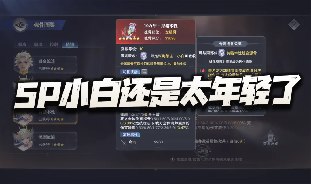 今天的攻略咱们来把SP小白的左腿进化魂骨做个简单的实测报告,反正这块魂骨之前很多朋友还是抱有不小期待的,毕竟作为SP小白主打PVP的一块进化魂骨,且还给到了类似于开局无视对方什么被动魂环等等功能,有朋友就在问有了这块魂骨之后,是不是SP小白就能和SP宁荣荣一样在PVP战斗中所向披靡了?那么在经过了大量的实测对比后,维一发现有这种想法的朋友们可能还是太年轻了,估摸着如果搞了的就得重走一趟SP修三的老路了......