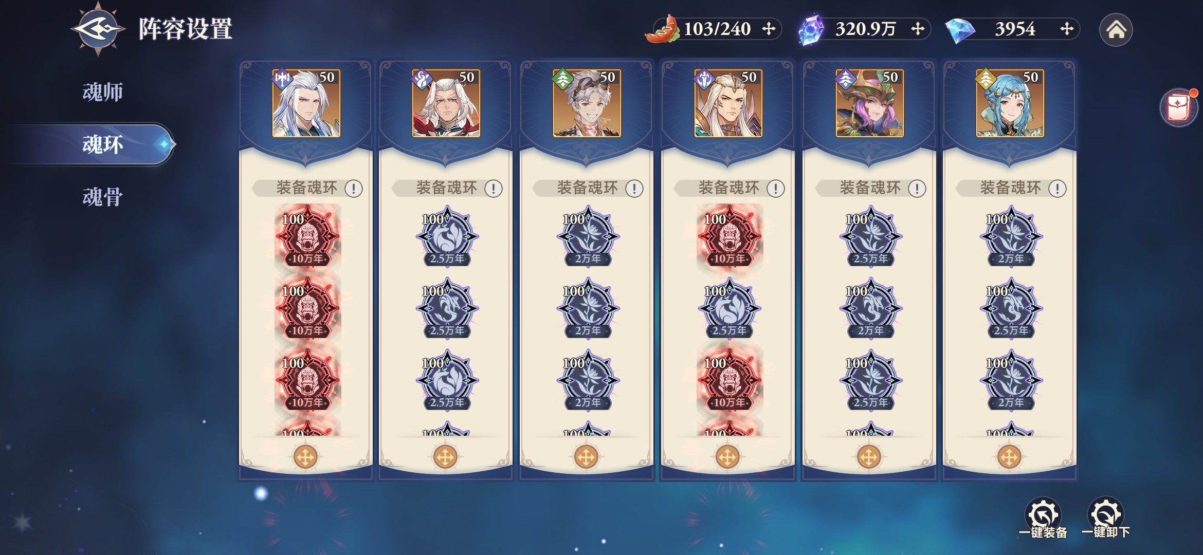 ②中氪、顶氪:输出魂师全部装配猛兽系,提高极限输出能力。