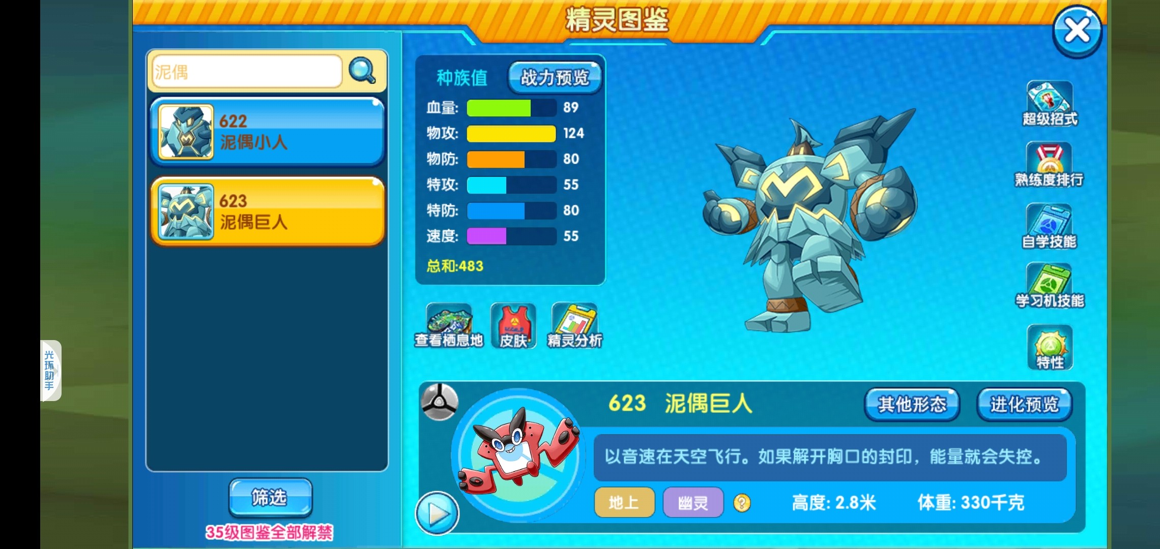 9泥偶巨人是泥偶小人的进化型。是古代人为了保护人跟精灵而制造出来的,据说体内还放入了可以制造神圣能源的装置。即使现在古代人都已经灭亡了,一般认为,它依然会忠实地执行当时的命令。它会手脚并拢紧贴,用马赫速度在天空飞行,并且用非常强大的力量战斗。如果解开在胸口的封印,暴发的能源据说会从裂缝处喷出来!