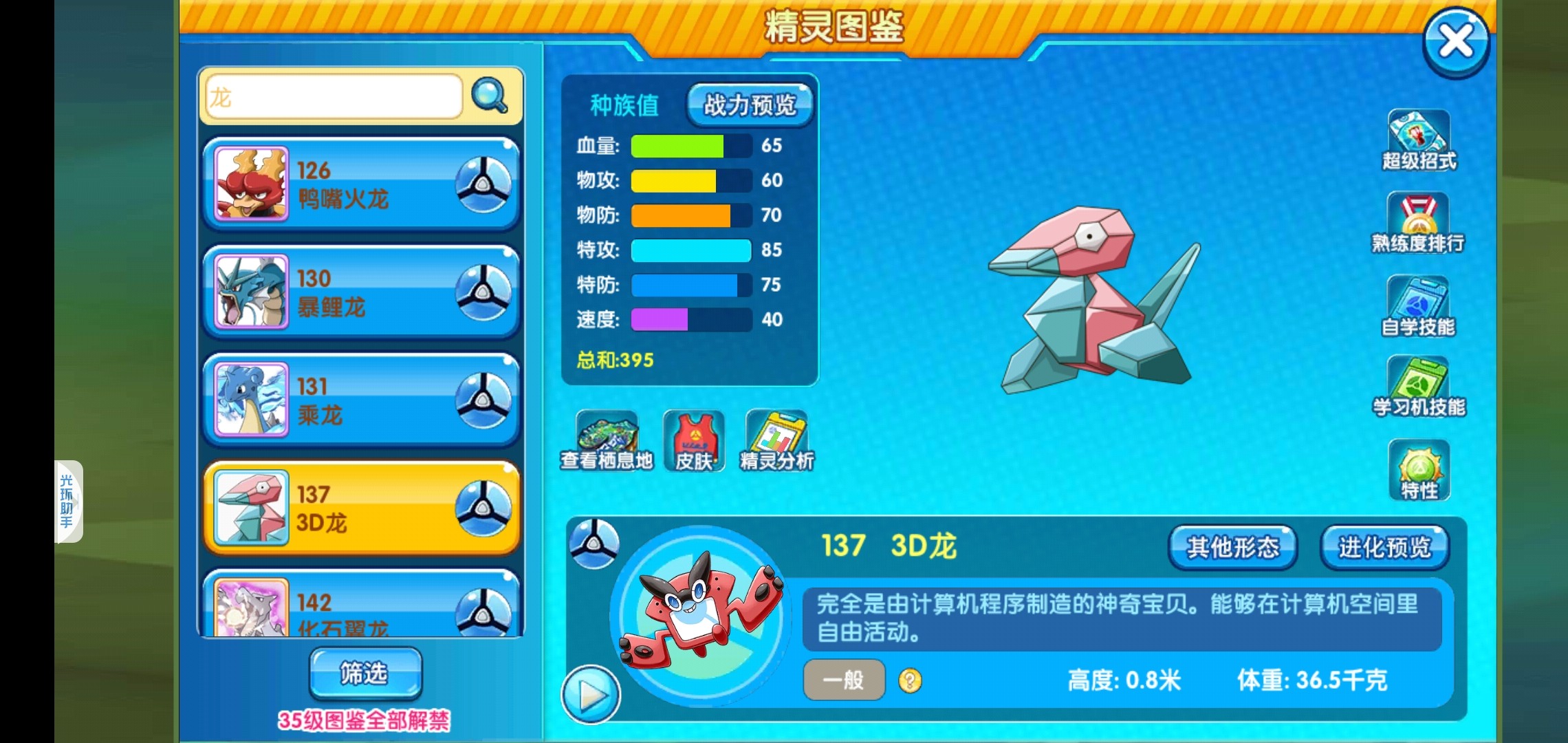 3d龙是第一个在现代被故意制造的人造精灵,根据西尔佛公司的报告,3d龙由宝可梦研究所所创造。此外,3d龙为火箭游戏城的奖品,推测火箭队也参与了3d龙的制造。它没有性别。拥有能让属性变更为自己拥有的一个招式的属性,或抵抗对方上一个攻击招式的属性的能力,只有3d龙跟它的进化能学会这些招式。这些过程称为纹理和纹理2,纹理具有前者的功能,纹理2具有后者的功能。
