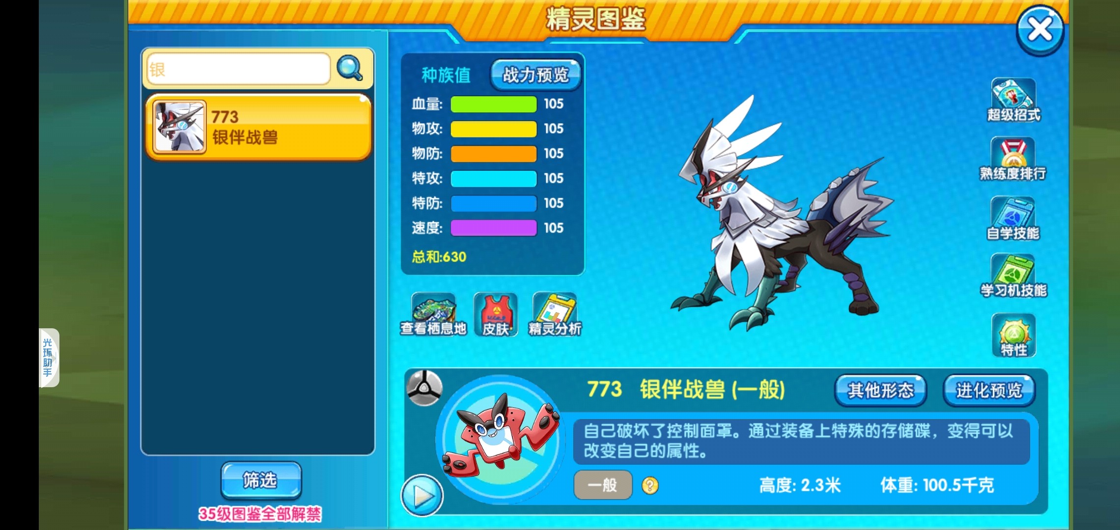 银伴战兽也属于人造精灵,它是属性空的进化型,它能通过跟伙伴加强羁绊关系而进行进化,进化后它的能力得到了觉醒,可以自由变换属性,实力得到了极大的加强,依靠自己的意志力破坏了束缚的面具。 从沉重面具的束缚中得到解放,速度因此显著提升。 银伴战兽有着类似鸟类的头部,头顶的部位类似鸟类的翅膀,而身体的部分则看起来像是兽类,尾巴则看起来是鱼类的尾巴,让其看起来就像是几种生物分别组合在一起一样。