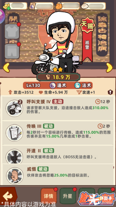 巡警是法系输出的好帮手,他的被动技能可以使伙伴的攻击忽视法防,并且主动技能和被动技能都可以对敌人进行控制。在解锁开道技能后,主动技能可以对沿途的所有敌人造成伤害,并且可以击退敌人。传唤每两秒会对范围敌人造成伤害,并且有概率造成击晕。巡警可以增加法系伙伴的输出能力,并且有着强大的控制能力,建议大侠可以作为队伍的辅助进行培养。