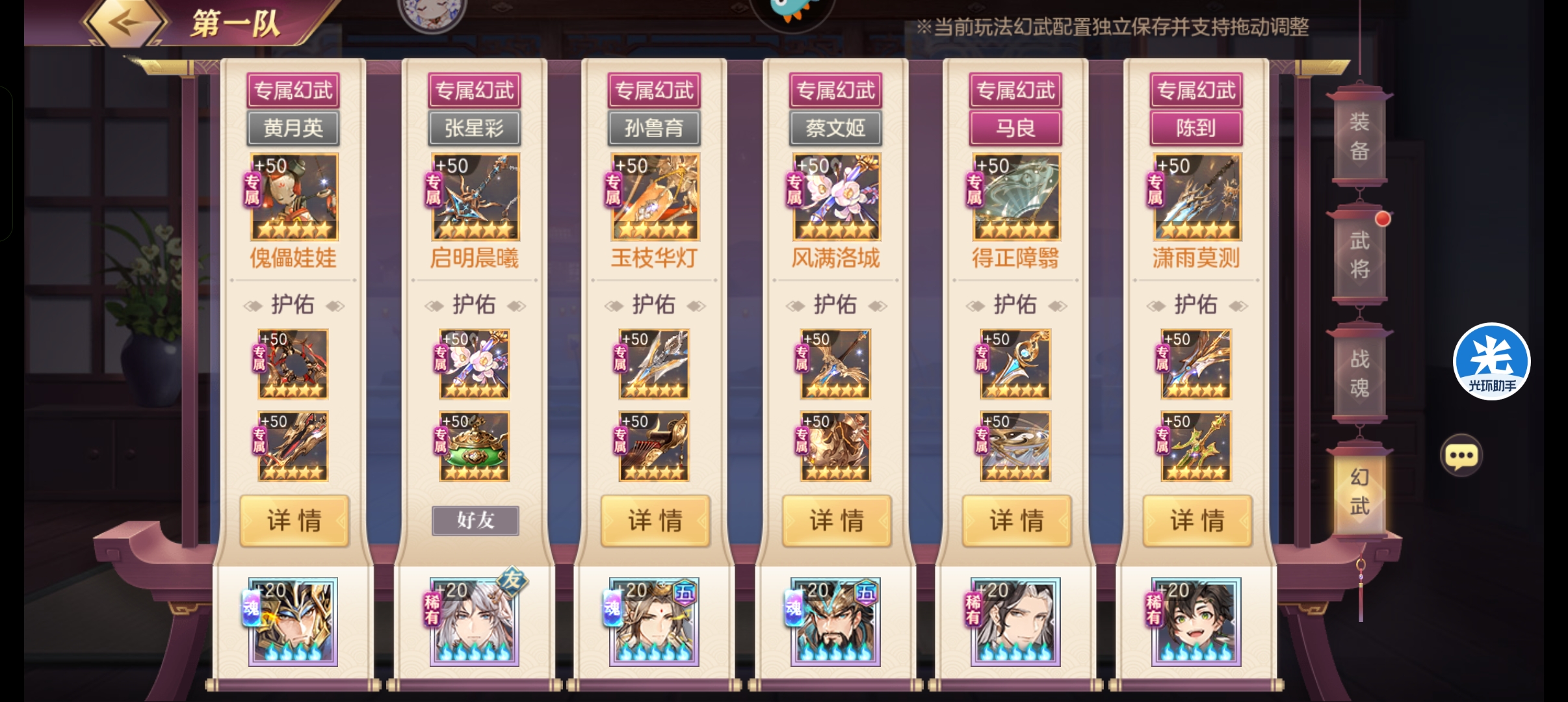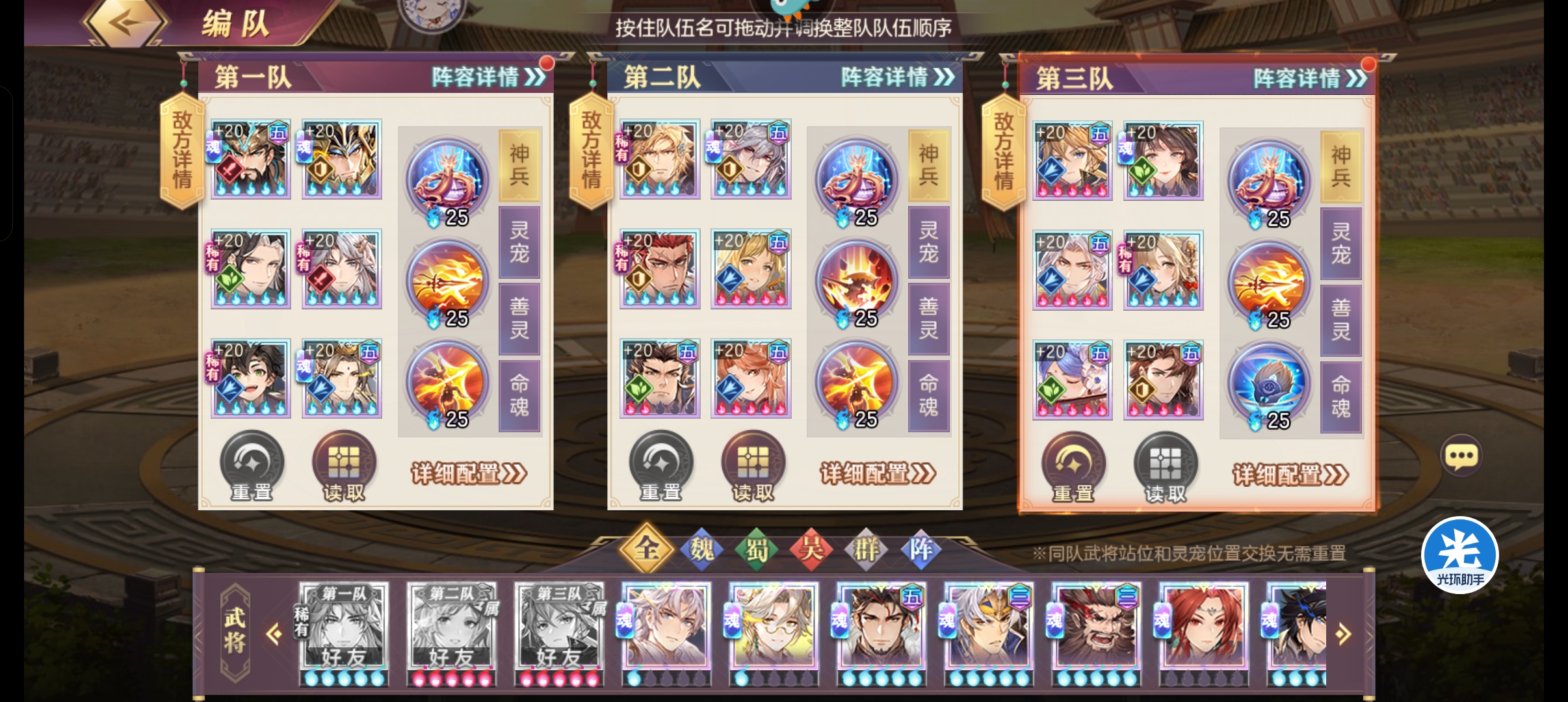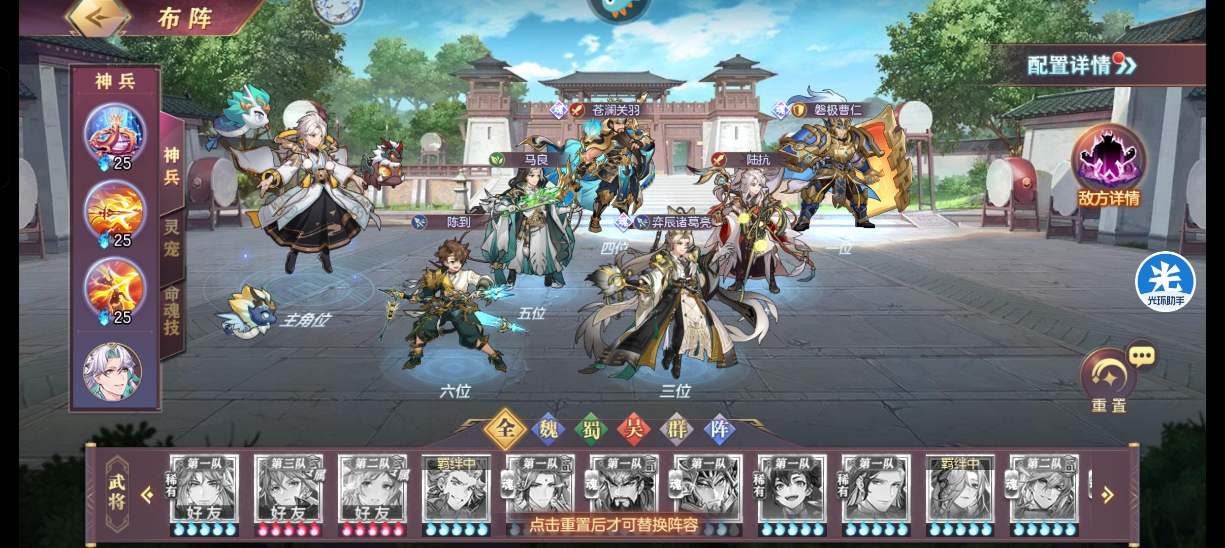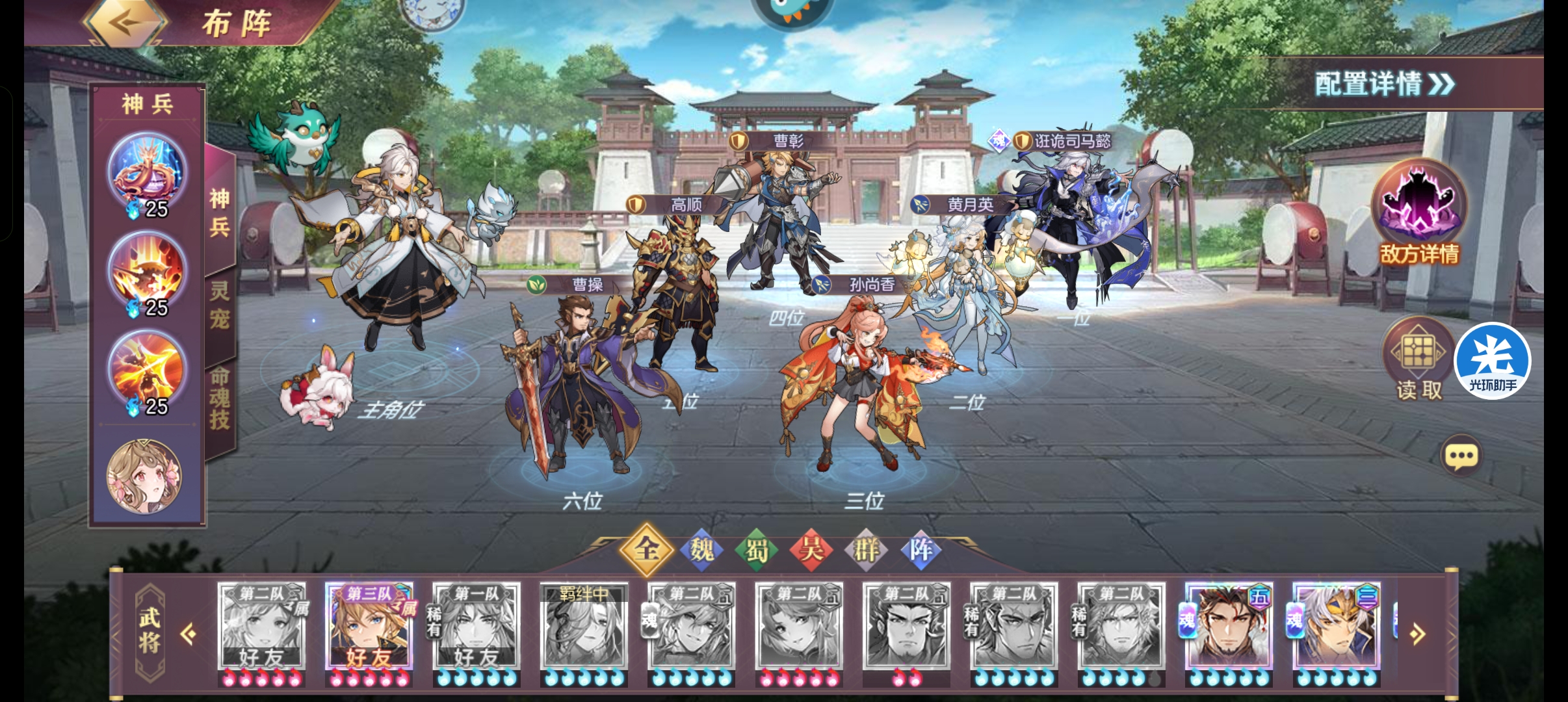 命魂:黄月英-孙尚香-曹操(有五红高顺,命魂技能的下孙尚香上高顺)
