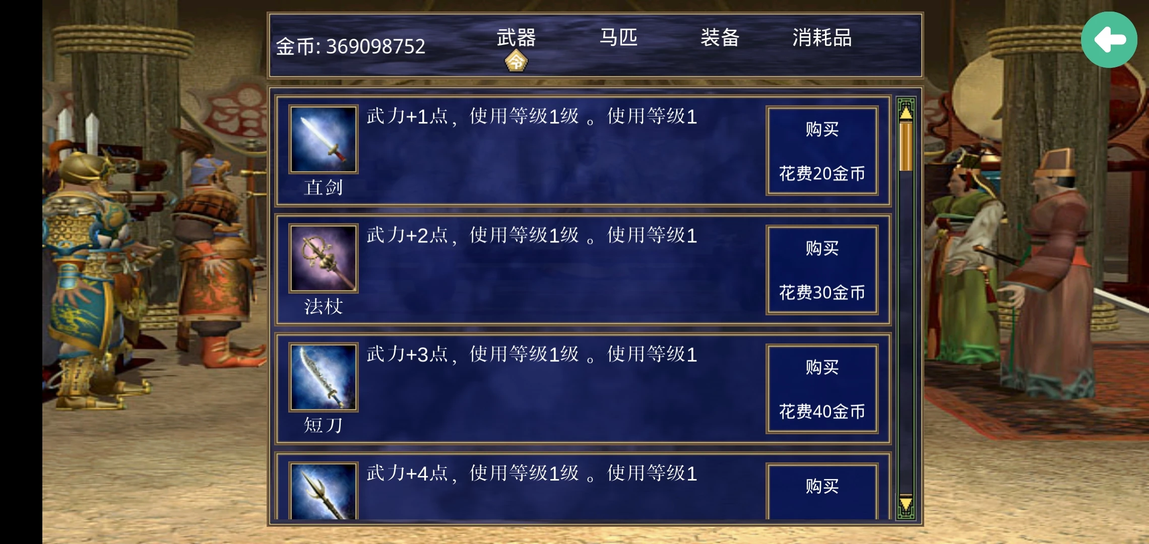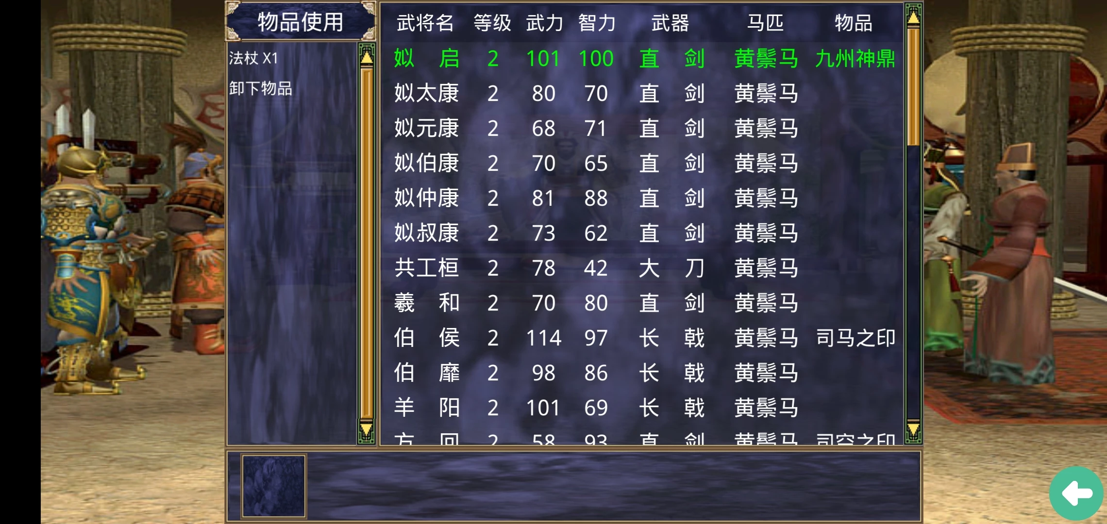 武器,马匹等等装备会根据价格的不同,对属性的强化也有所不同,同时在其中寻找到的人才水平也会有高低之分,寻找更加优秀的人才也是争霸的关键所在。整体上对于一款策略类游戏来说,功能相当的齐全,小编认为这种类型的游戏更偏向于文字策略,更多的添入其他元素会适当增强游戏体验。