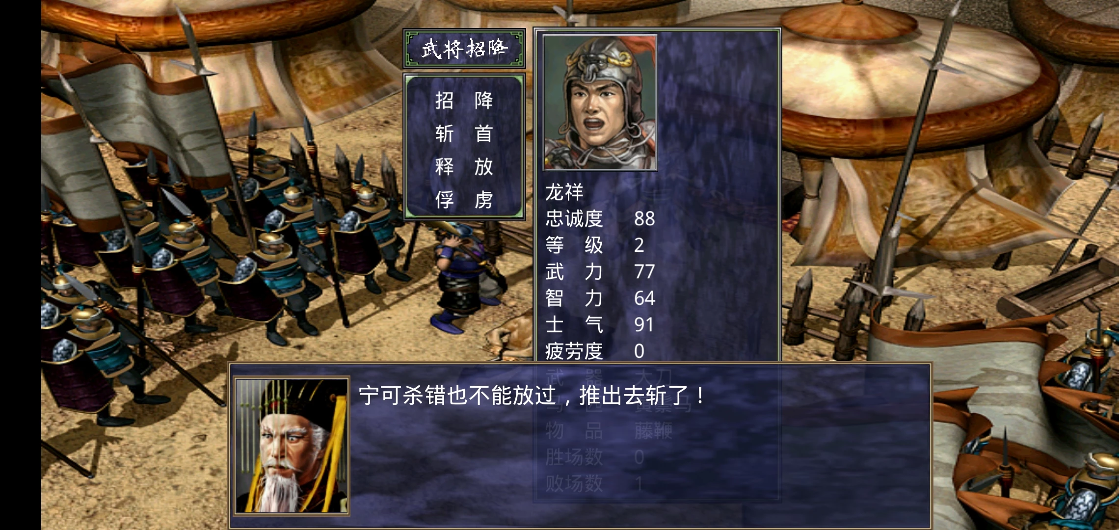 战争作为这款游戏的最大卖点,主要通过玩家的自行选择攻略的城池发动战争,在出战之前选择出征的武将,玩家可以根据武将所配备的兵种不同自由搭配,以形成最大的伤害,小编在游戏过程中发现一个厉害的武将对游戏往往起到关键作用,很有可能仅仅通过一个武将就赢得战争的胜利。在游戏过程中,玩家可以安排合适的阵型让自己的攻击最大化,通过针对于武将,也可以发动武将技形成高额伤害,每一场战争都是这款策略游戏的一部分,如何准确利用每个武将的特性同样是玩家们需要重点考虑的。每一次战争过后都会俘虏敌方的武将,不论是招降、释放还是斩首都有玩家自己选择。