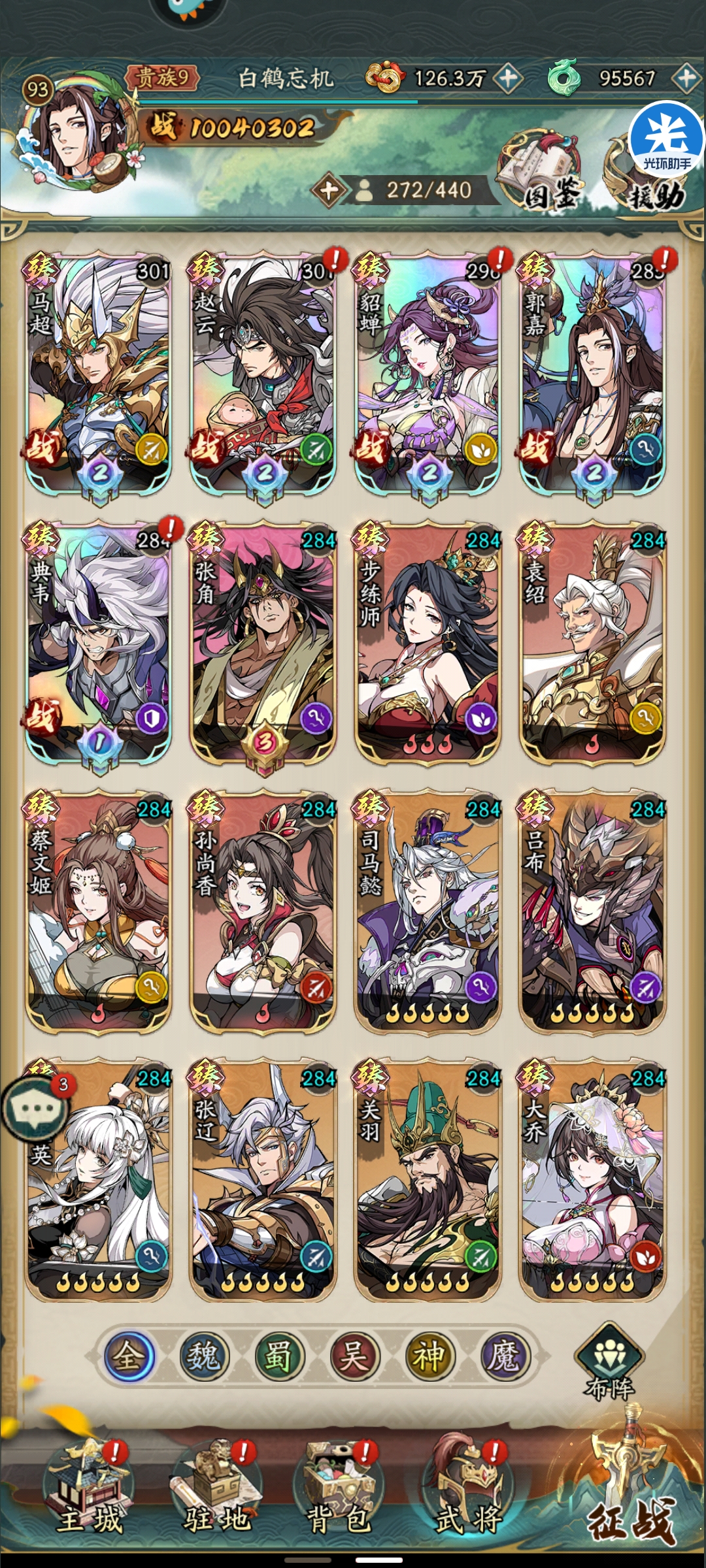 大致上目前平民最终阵容就是典韦张角马超蔡文姬貂蝉,神关羽换下典韦,华佗换下貂蝉。推完图拿完资源再换C