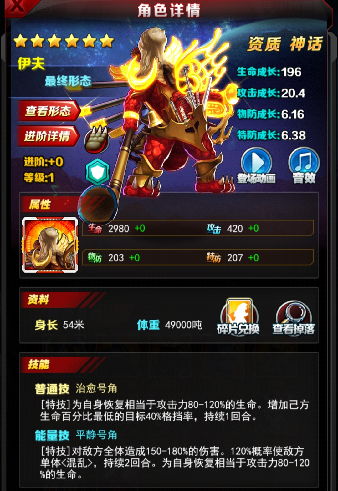 能量技:【特技】对敌方全体造成150%-180%伤害,有120%基础概率使敌方单体混乱2回合,并给自己回复80-120%攻击力生命。