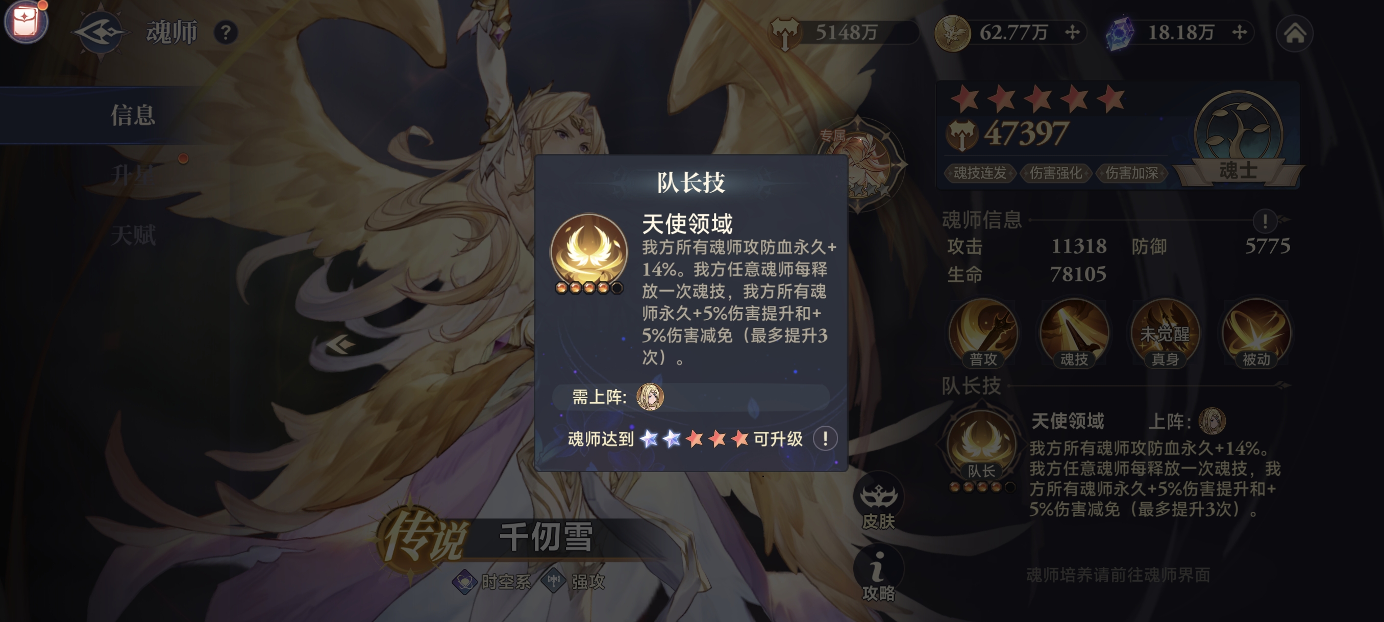 5星,武魂技变为无冷却,真身状态下每回合开始时净化自身1个随机异常状态。