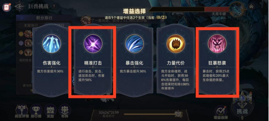 *注意!因为每期巨兽挑战的加成具有随机性,所以只能在5个加成选项中尽量选择加成更高的。