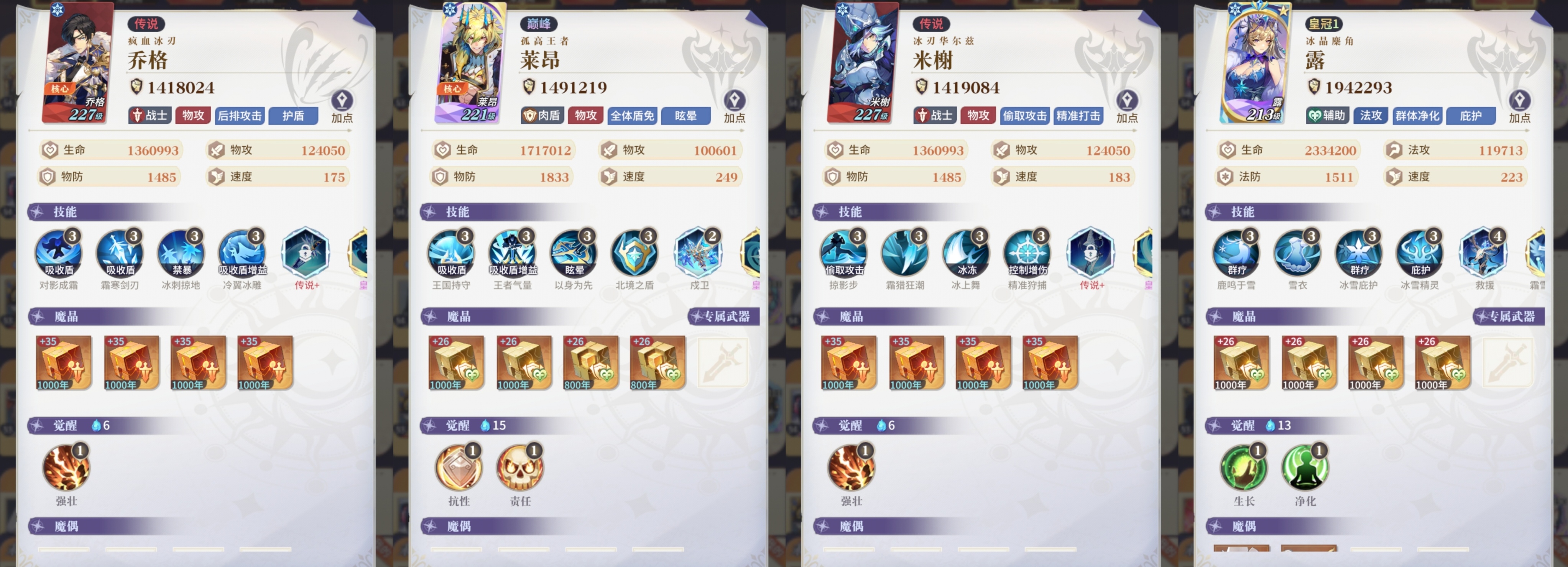 而且平民一下子培养双核【雪菲】和【乔格】也养不起,虽然冰冻阵容走单核核心培养:雪菲也行,但肯定是没有双核厉害。