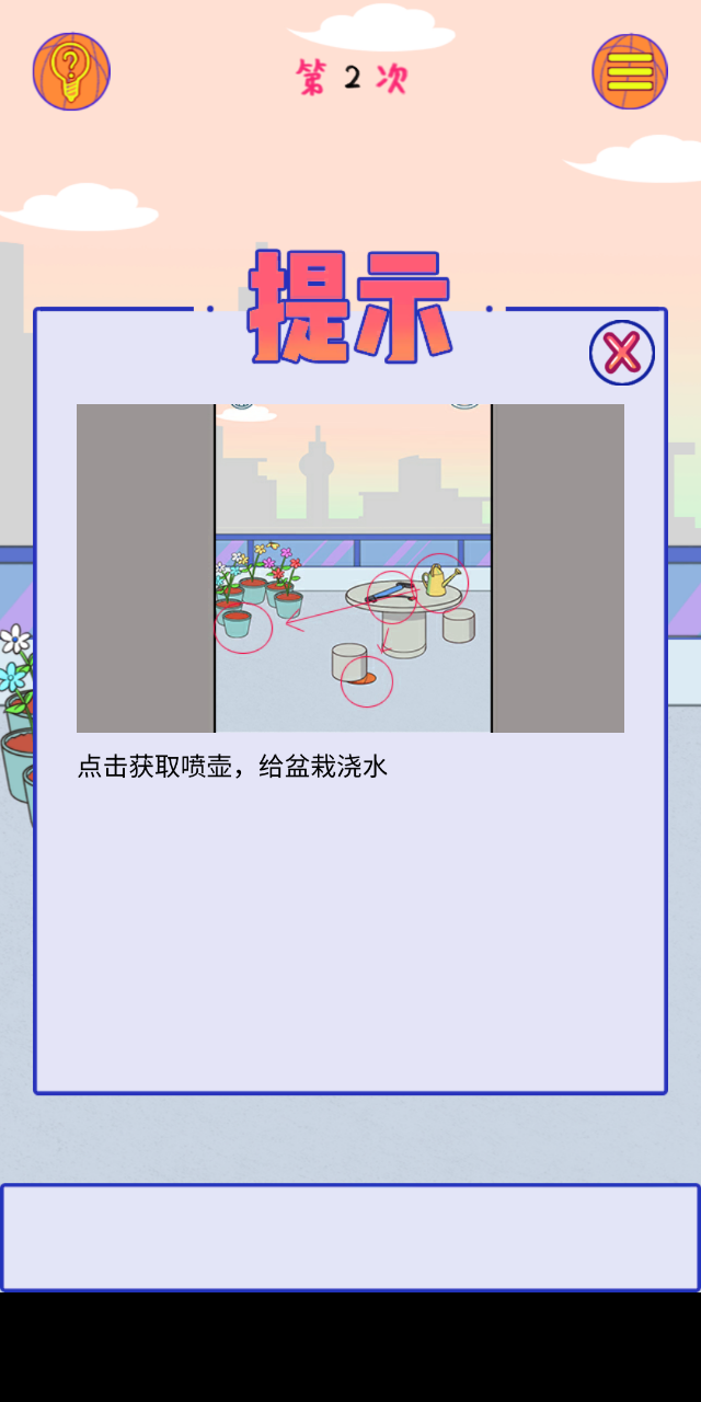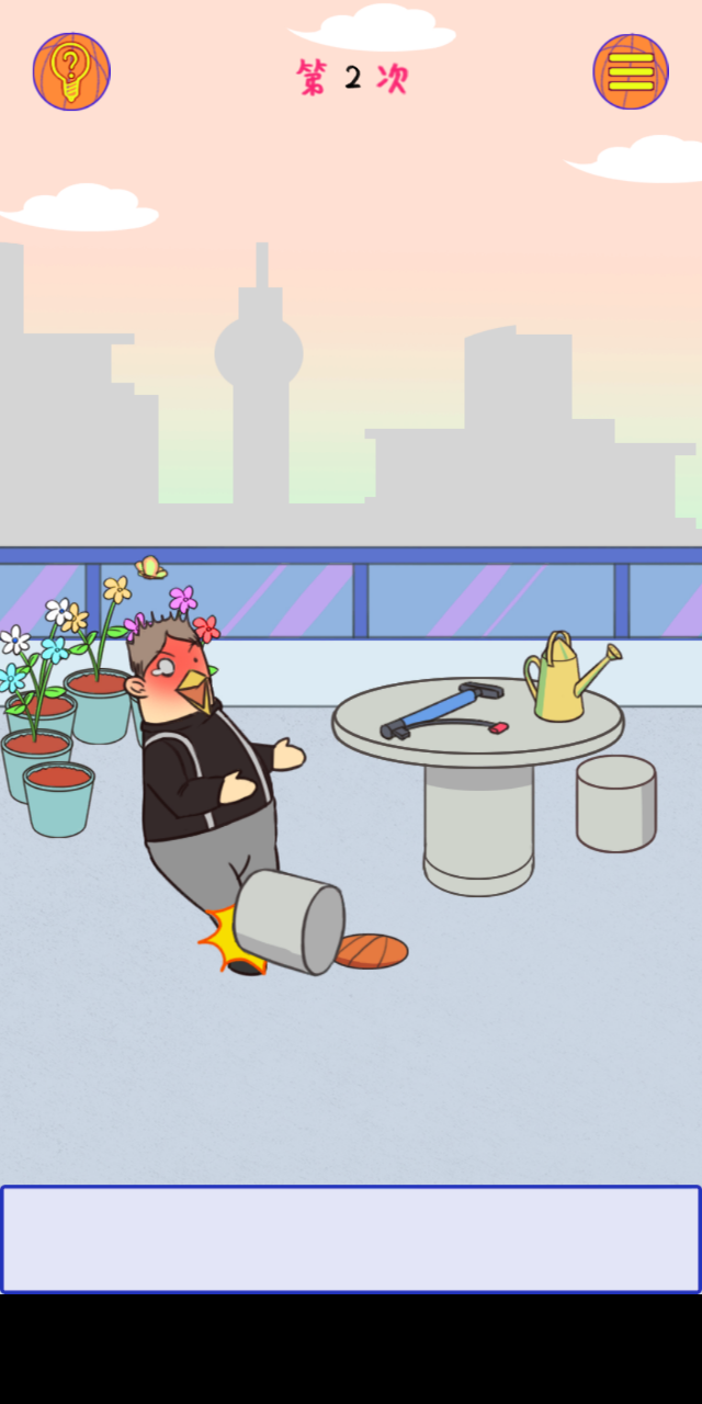 虽然目标明确,但想要在关卡中找到篮球却并不简单,一般需要借助各种各样的道具,解开谜题才能如愿以偿。比如在第二个关卡中,篮球被石凳压着,如果直接点击石凳,角色会因力量不够而被石凳砸倒;玩家需要使用花洒来灌溉植物,从而搬开石凳,类似这样脑洞大开的谜题数量众多,极具挑战性。