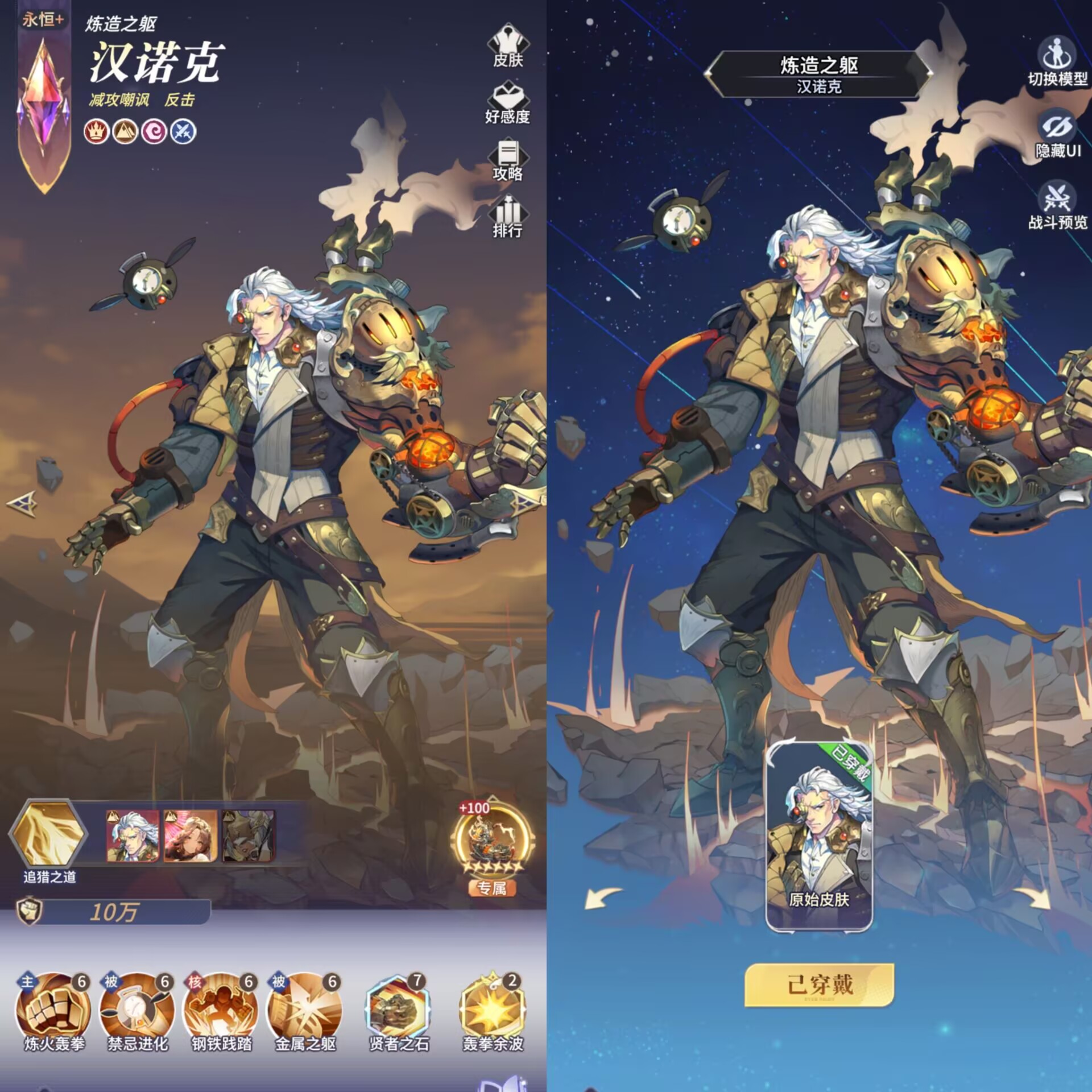汉诺克是格挡阵容的核心战士,能抗能打,单体伤害高,还有反击+嘲讽机制。