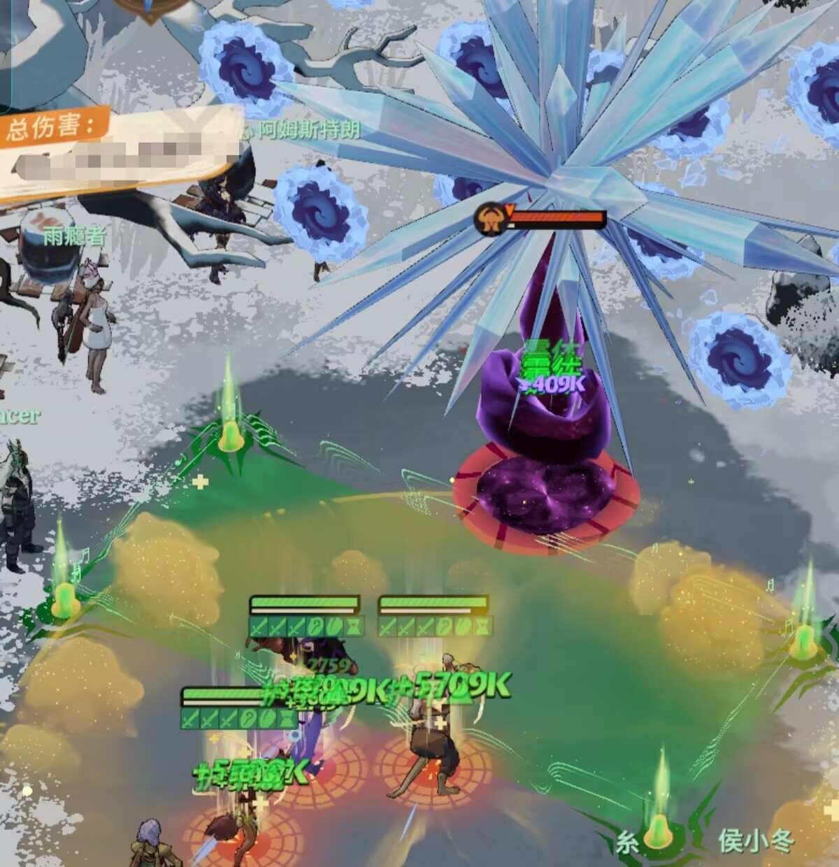重点来了如果大约在5秒内被寒冰封印的目标生命没有恢复到50%,将直接会被boss击败碾压成冰块,无法复活。