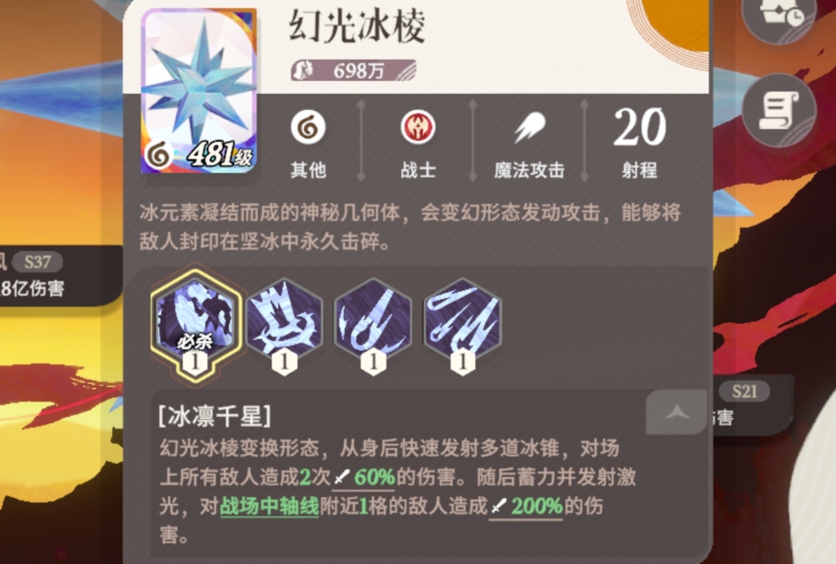 幻光冰棱:属于魔法输出型boss,射程为20全图攻击型。