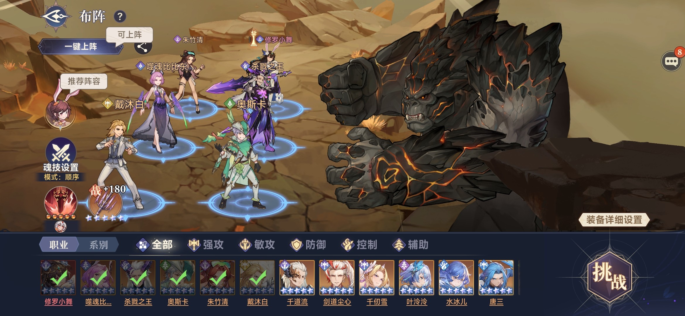 ③修罗小舞阵容:修罗小舞可以替换鬼魅或朱竹清,通过弗兰德、奥斯卡提供的连击效果,提高主c的多段伤害输出能力,构建连击队进阶版。