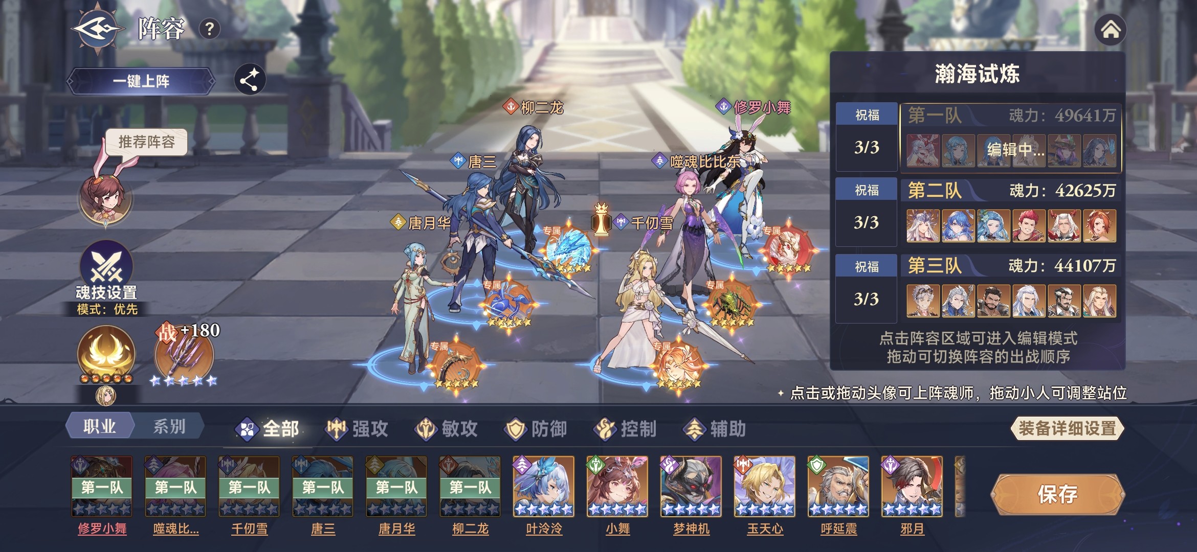 ②常用队伍:剑道尘心+千仞雪+唐三+唐月华+阿银+柳二龙;增益为【无畏】【死斗】【回溯】。