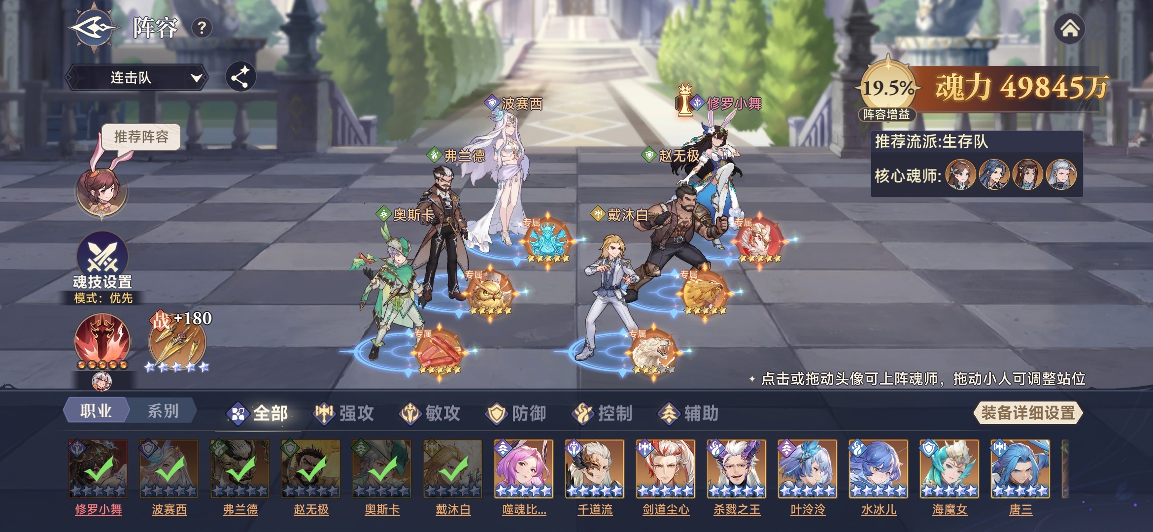 ③修罗小舞阵容:修罗小舞可以替换呼延震,修罗小舞有追加魂技、追加攻击,斩杀造成真实伤害等,进一步增强队伍输出能力,构建生存队进阶版。