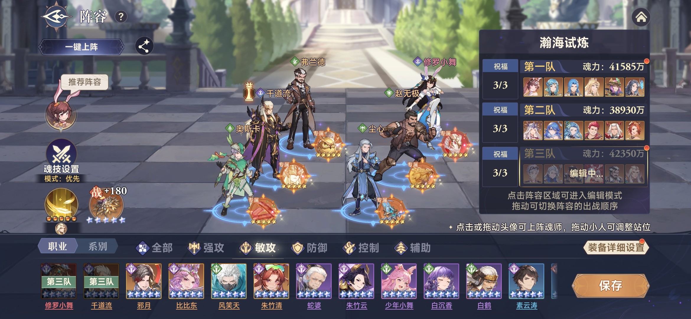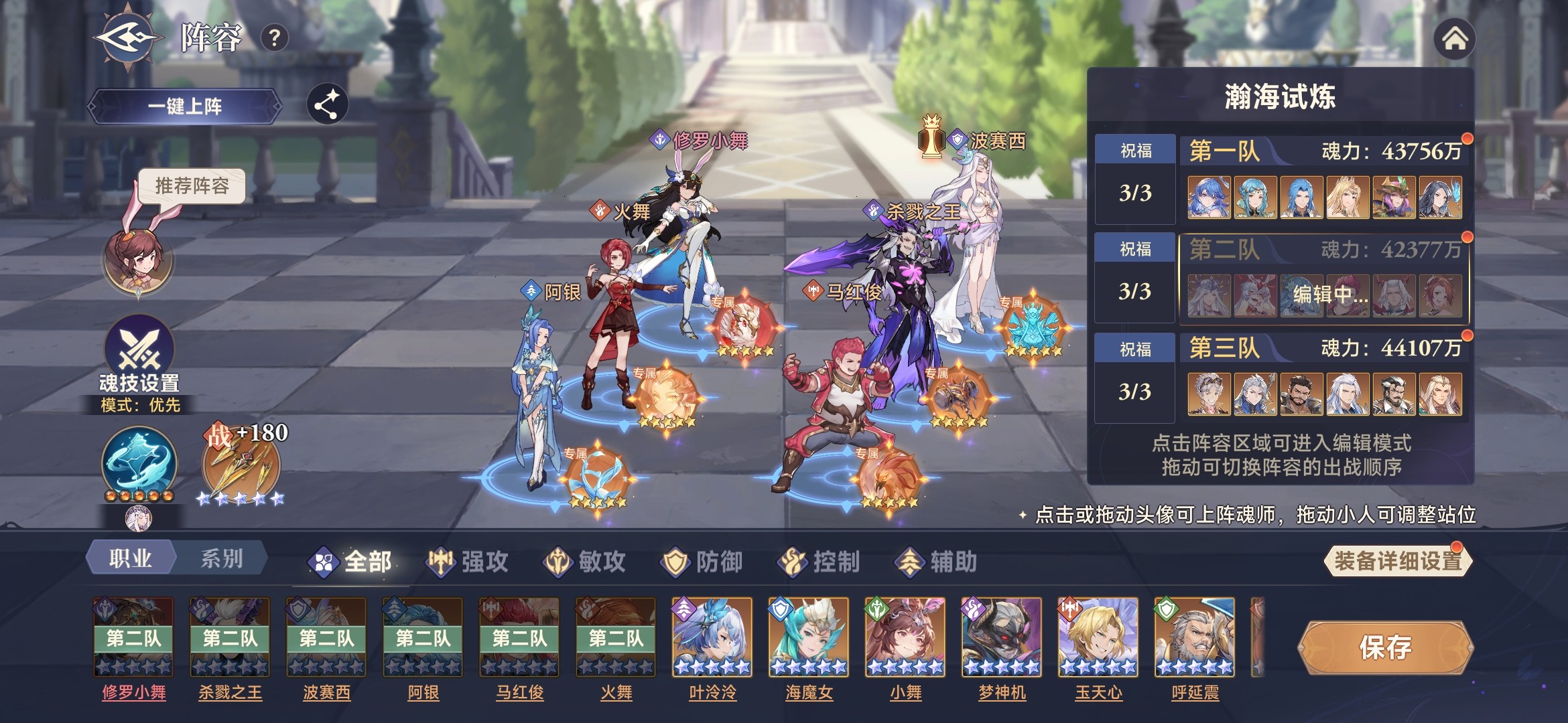 ②常用队伍:波塞西+鬼魅+奥斯卡+朱竹清+戴沐白+弗兰德或千道流+尘心+赵无极+宁荣荣+宁风致+呼延震;增益为【积攒】【潜能】【盾垒】或【反击】【复苏】【守护】。