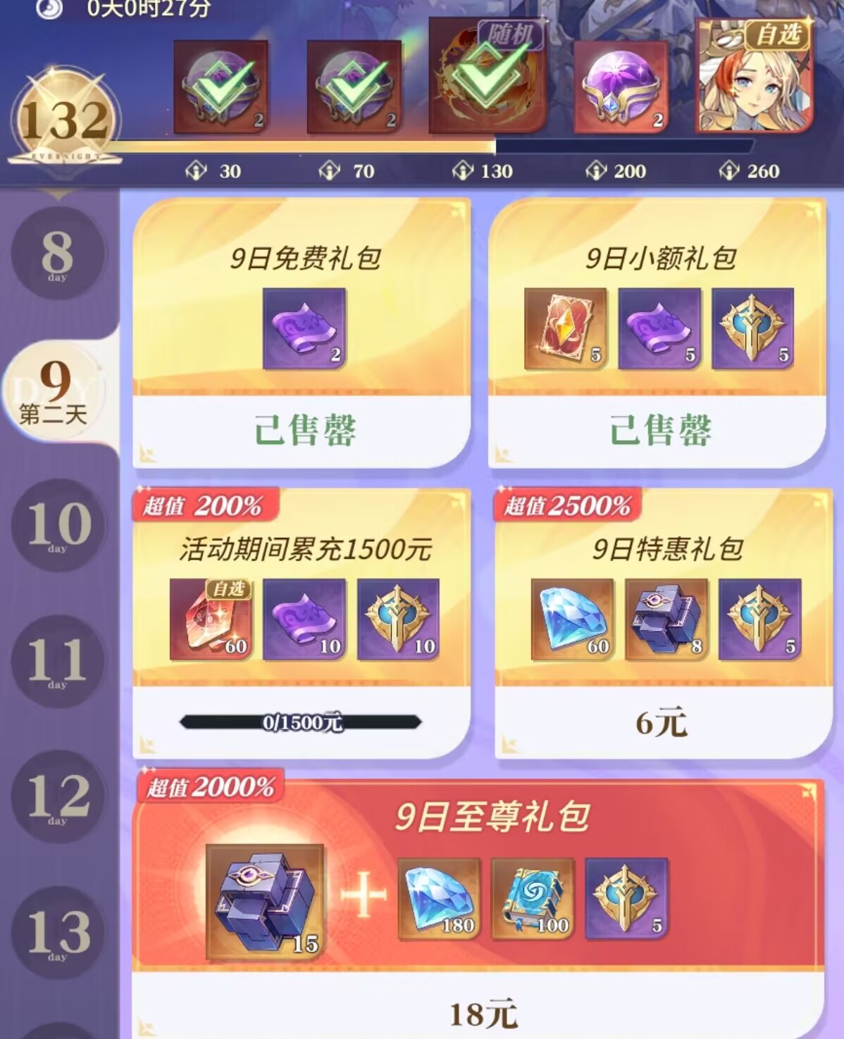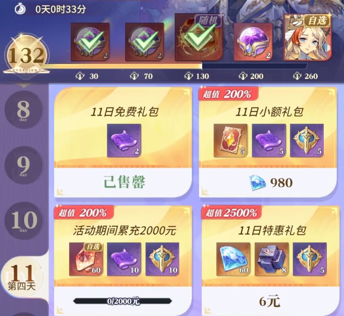 2:【7日目标】980特惠钻石小额礼包可买。其实7日目标这里的980特惠钻石小额礼包有点尴尬,因为就算把7个980礼包全部买完,也领不到最终的奖励,很尴尬。