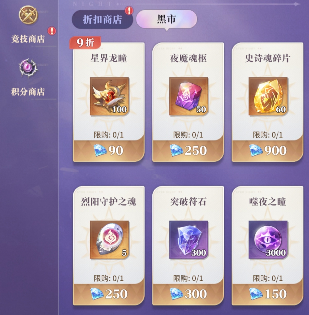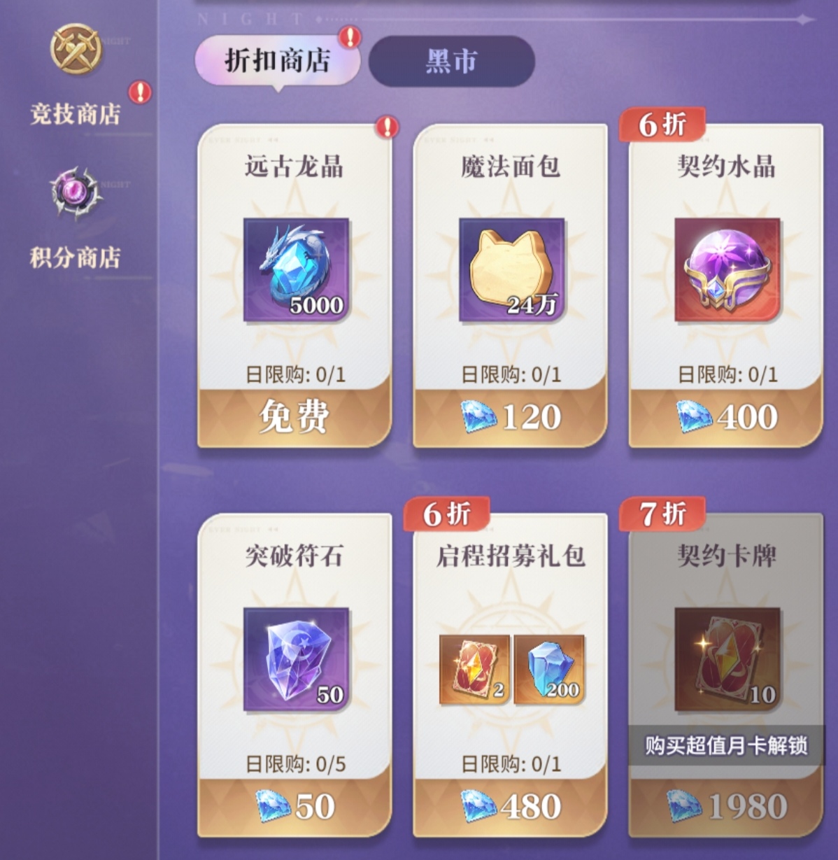 个人感觉黑市里面除了折扣的突破石可以买以外,其他都不是很推荐大家去买了。