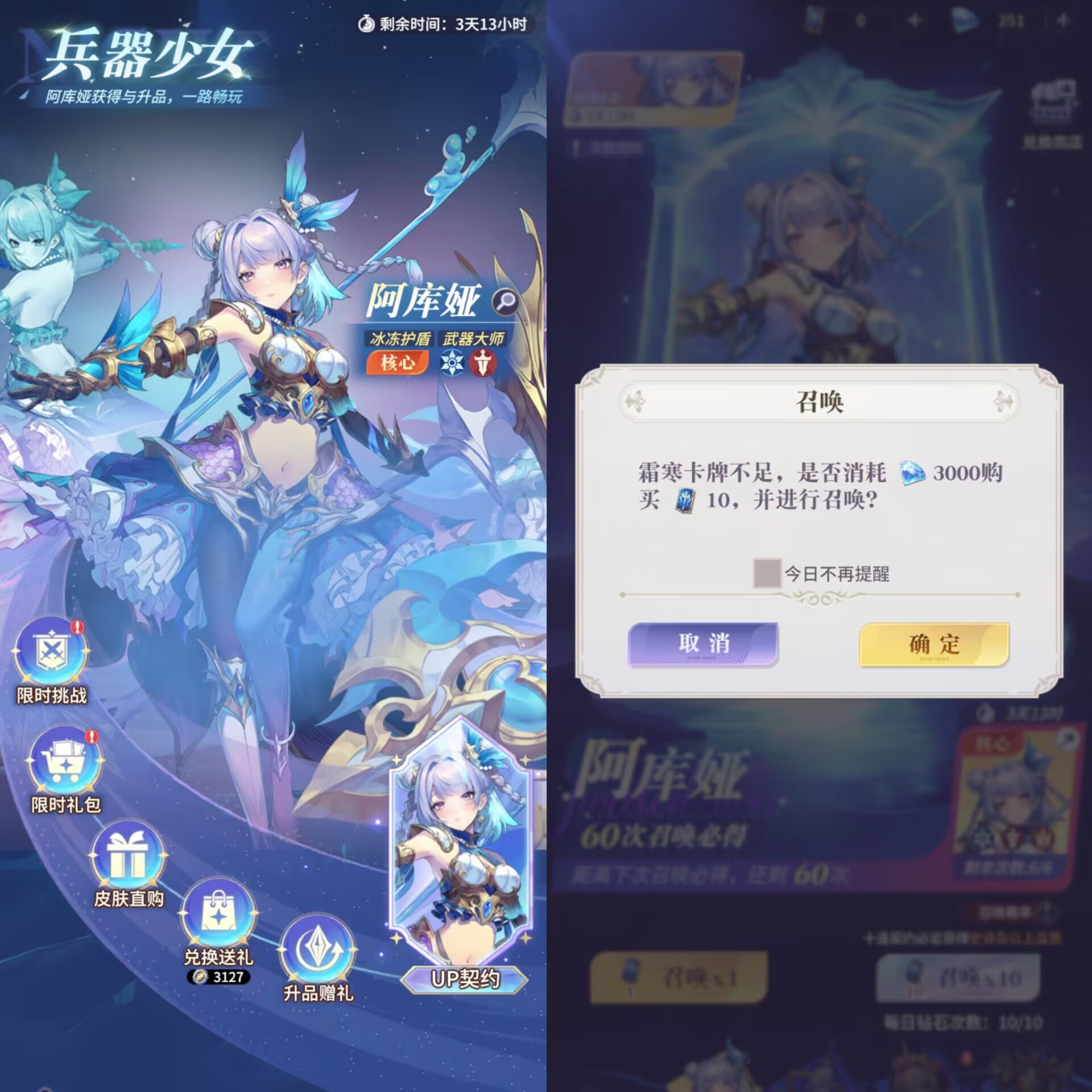 三:不推荐直接用【钻石】消耗的地方。①【契约召唤】不要直接无脑钻石十连抽,这里是最亏的,要抽也是商店买折扣的召唤卷抽。