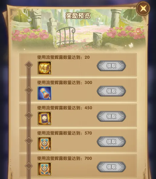 3.玩家现在可以根据流萤辉露的累计使用数量,领取额外的丰厚奖励。