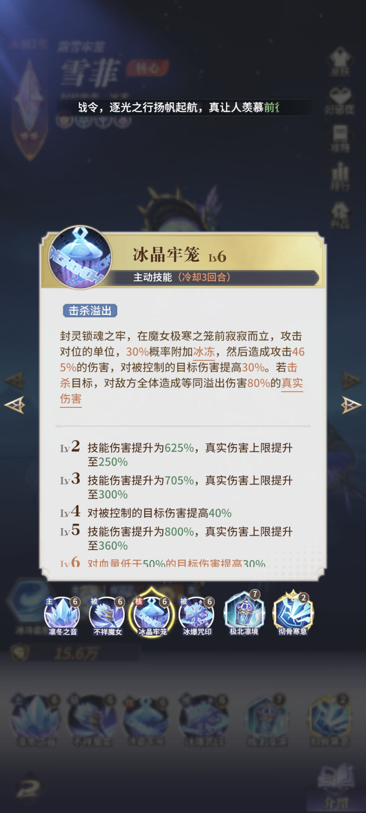 而她又是攻击对位的特性,可以越过坦度较高的前排直接攻击后排脆皮C位,如造成击杀则将溢出伤害转化为全体真伤,如未造成击杀则技能冷却从3回合降低到1回合,大幅缩短爆发周期。