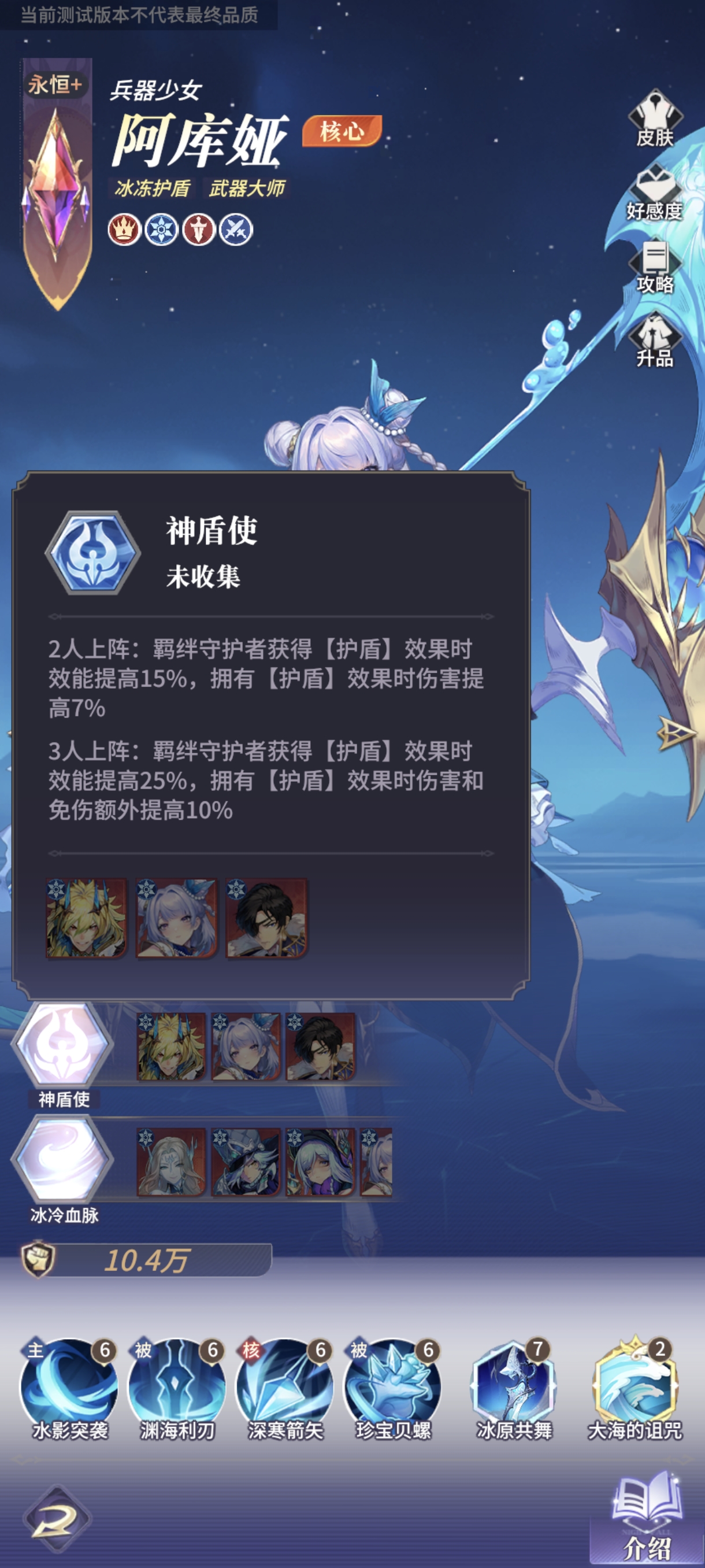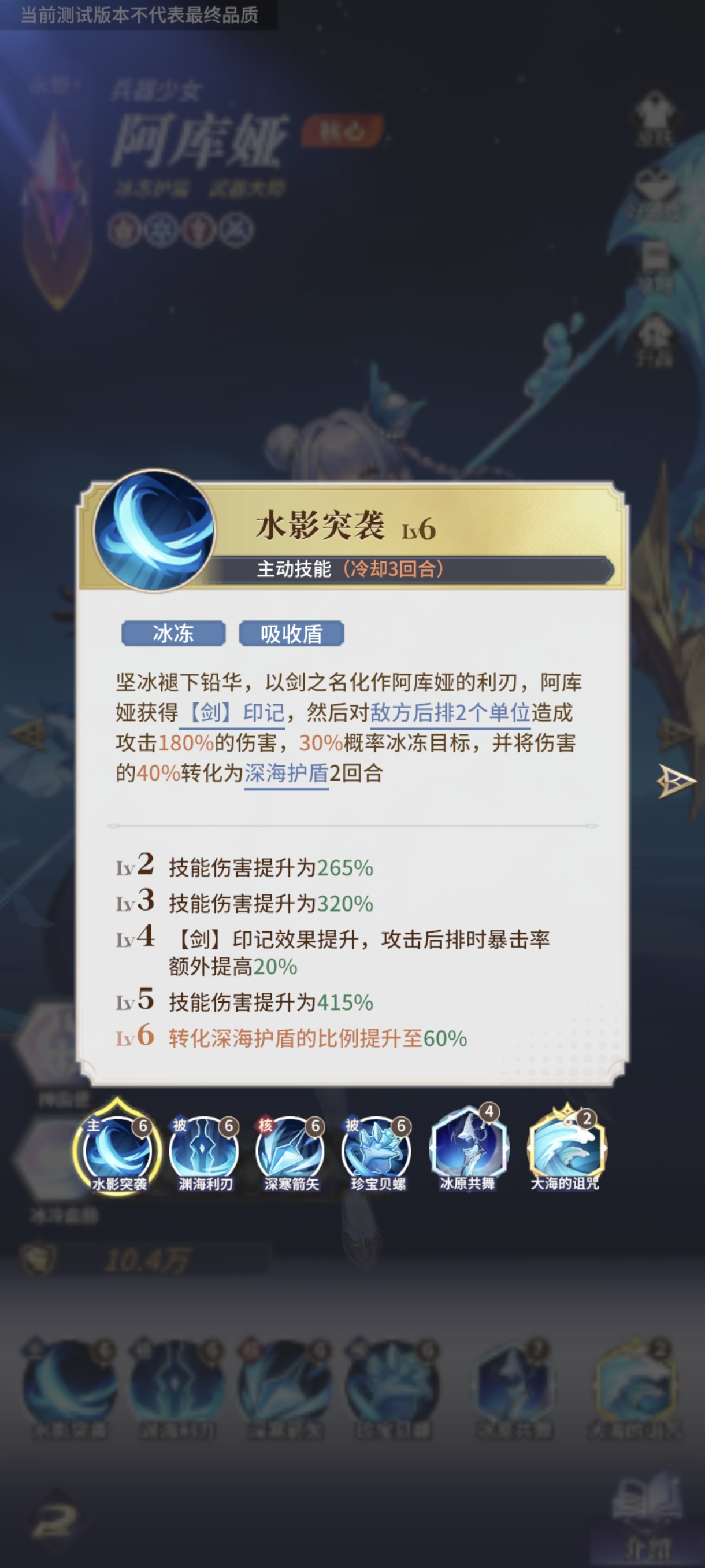 限定英雄-阿库娅是护盾切后阵容的最后一块拼图,自身不仅有乔格同款的伤害转护盾,还是更高级的【深海护盾】,能大幅提高减伤(对火系加倍)。