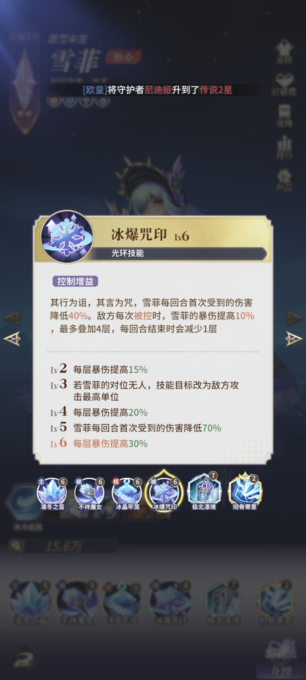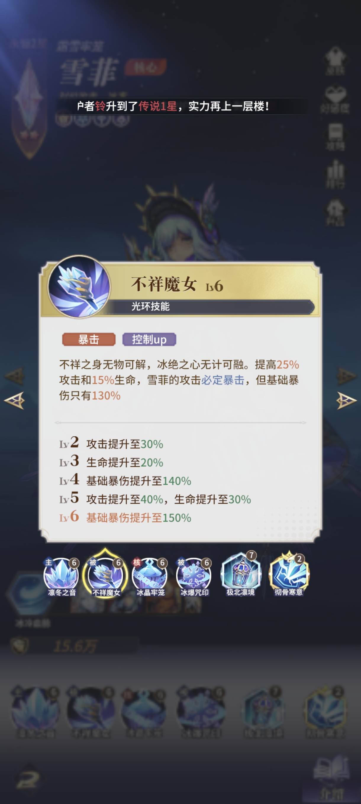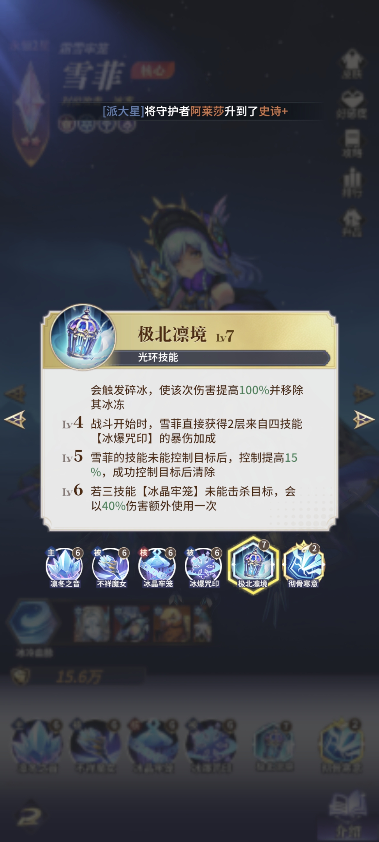 雪菲作为控制队的主C,拥有全服唯一的必暴天赋,并且在敌方被控时可叠加暴伤(最高120%),配合她的碎冰机制(如目标已被冰冻则大招伤害+100%后破冰)和大招未击杀自带连击,自身伤害能力爆表。