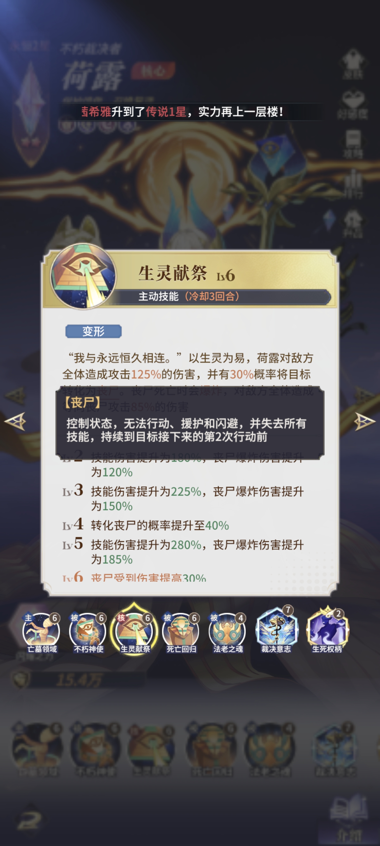 用闪耀系英雄-何露替换掉丝黛拉,何露的招牌大招变丧尸就是更高阶的群体控制,不仅具有眩晕的效果让敌方无法行动,还能让目标无法闪避和援护并失去所有被动技能。