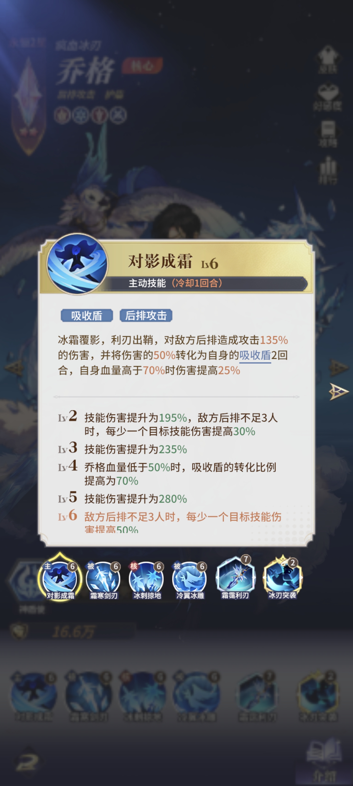 前期以乔格和莱昂为基础,在第一个限定英雄-冰系阿库娅登场时完全成型,她不仅能补全羁绊【神盾使】,还有着超高的爆发,增加秒人能力。