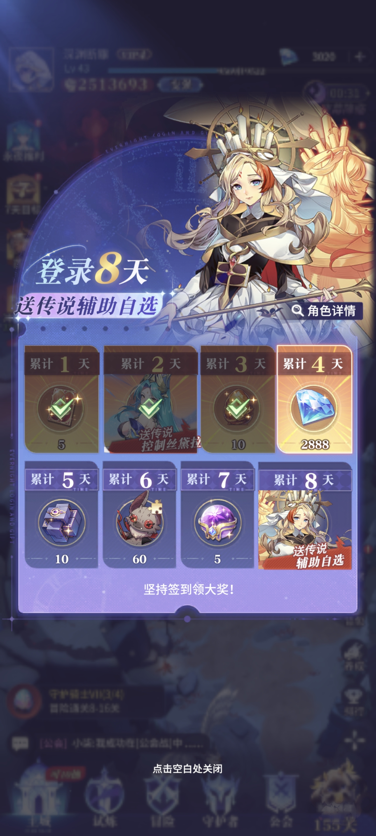 第四天上线,先领取挂机和各种活动、签到奖励。