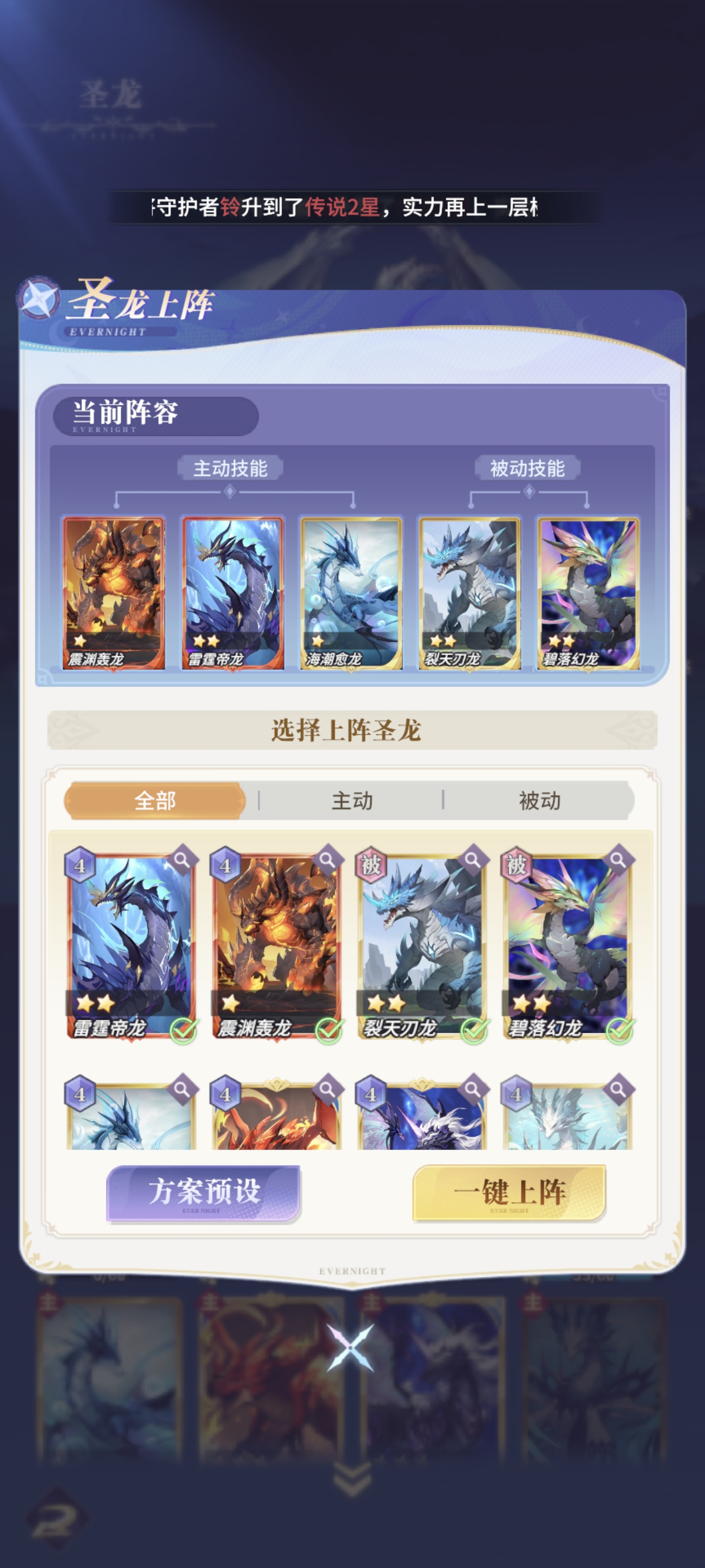 战令和累充送了2只雷霆帝龙,第5个圣龙位也开启了,调整一下圣龙上阵自己最强的。