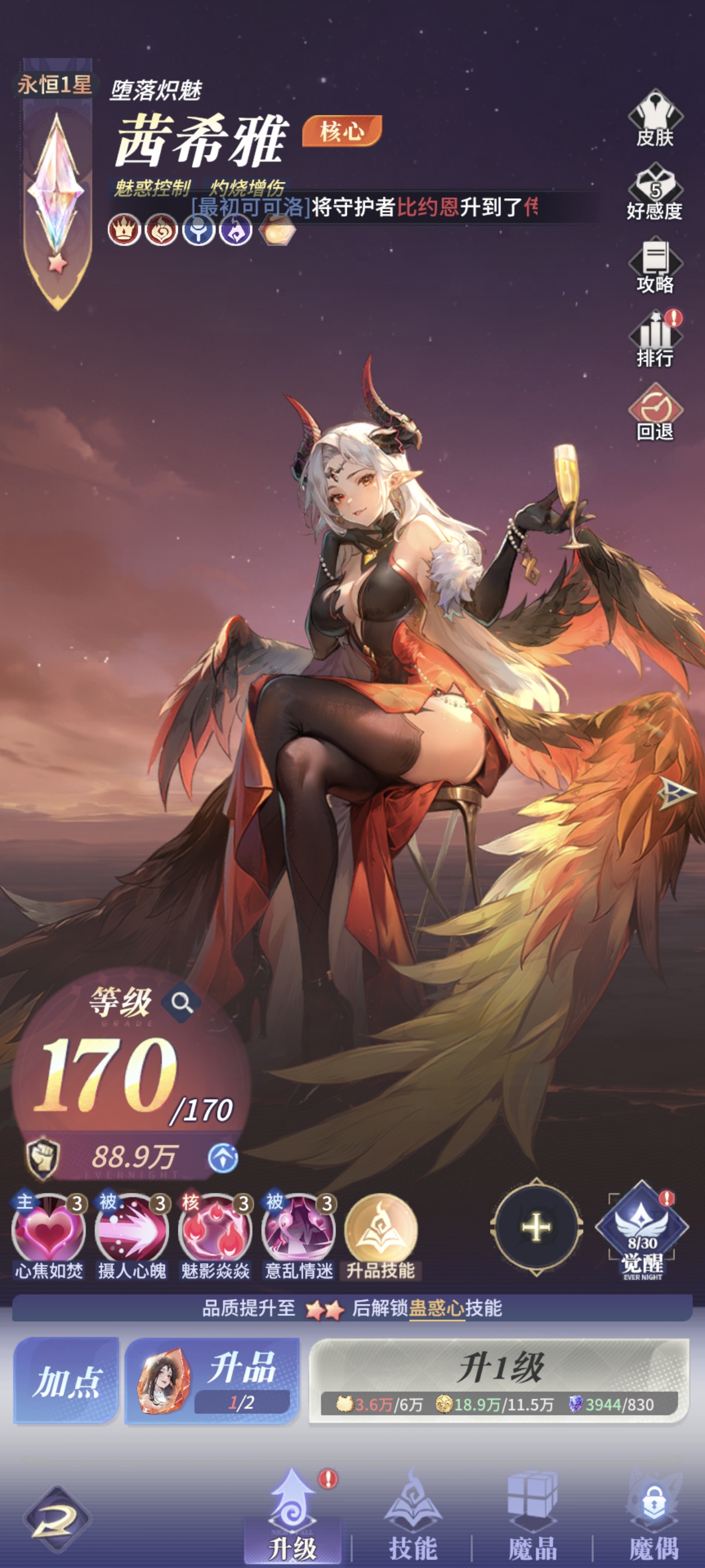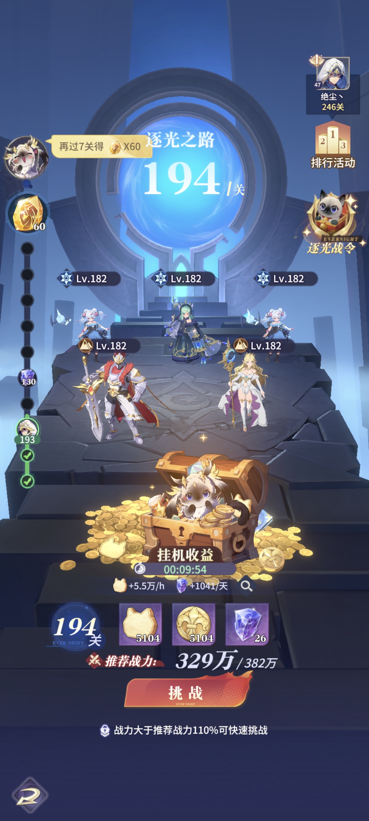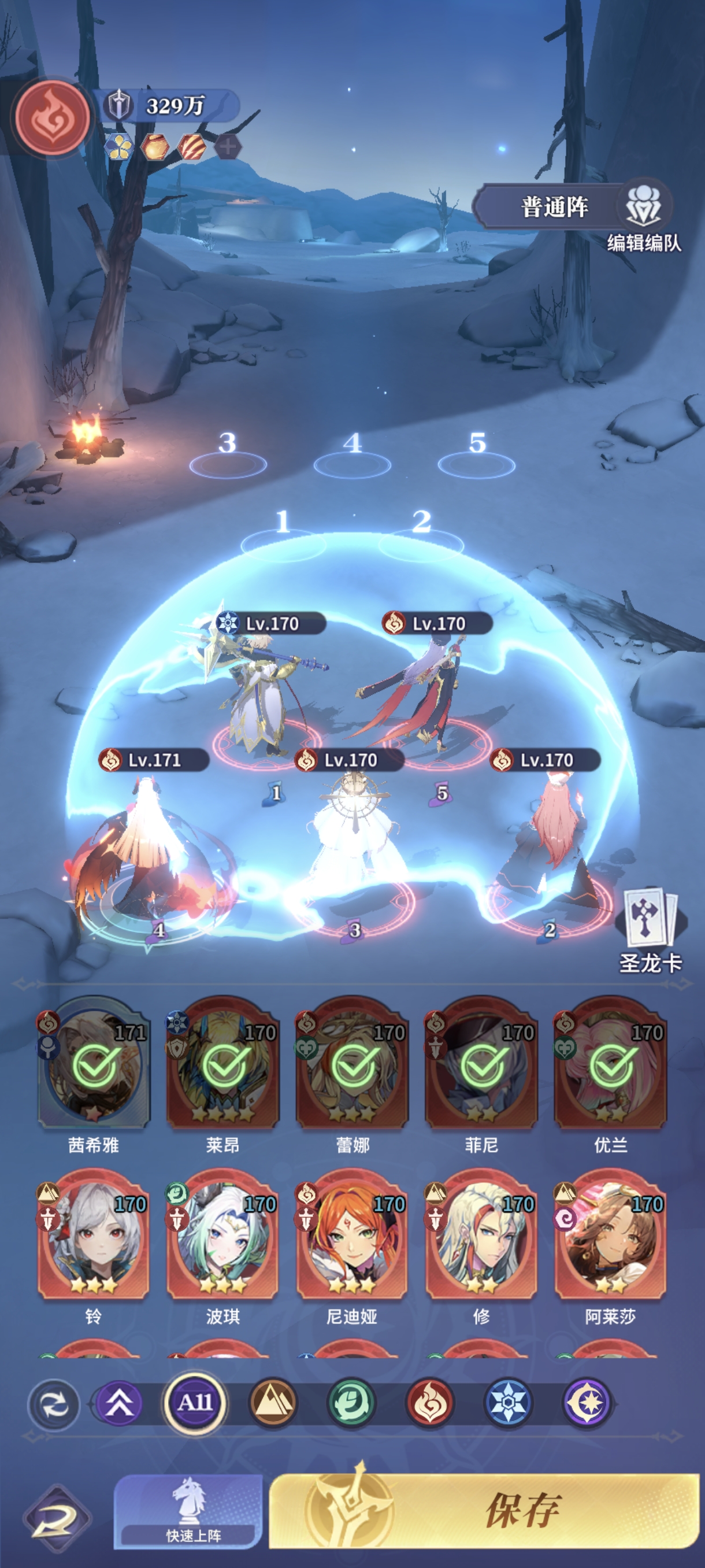 2、所有英雄170级,主C茜希雅红1星,主坦莱昂4星