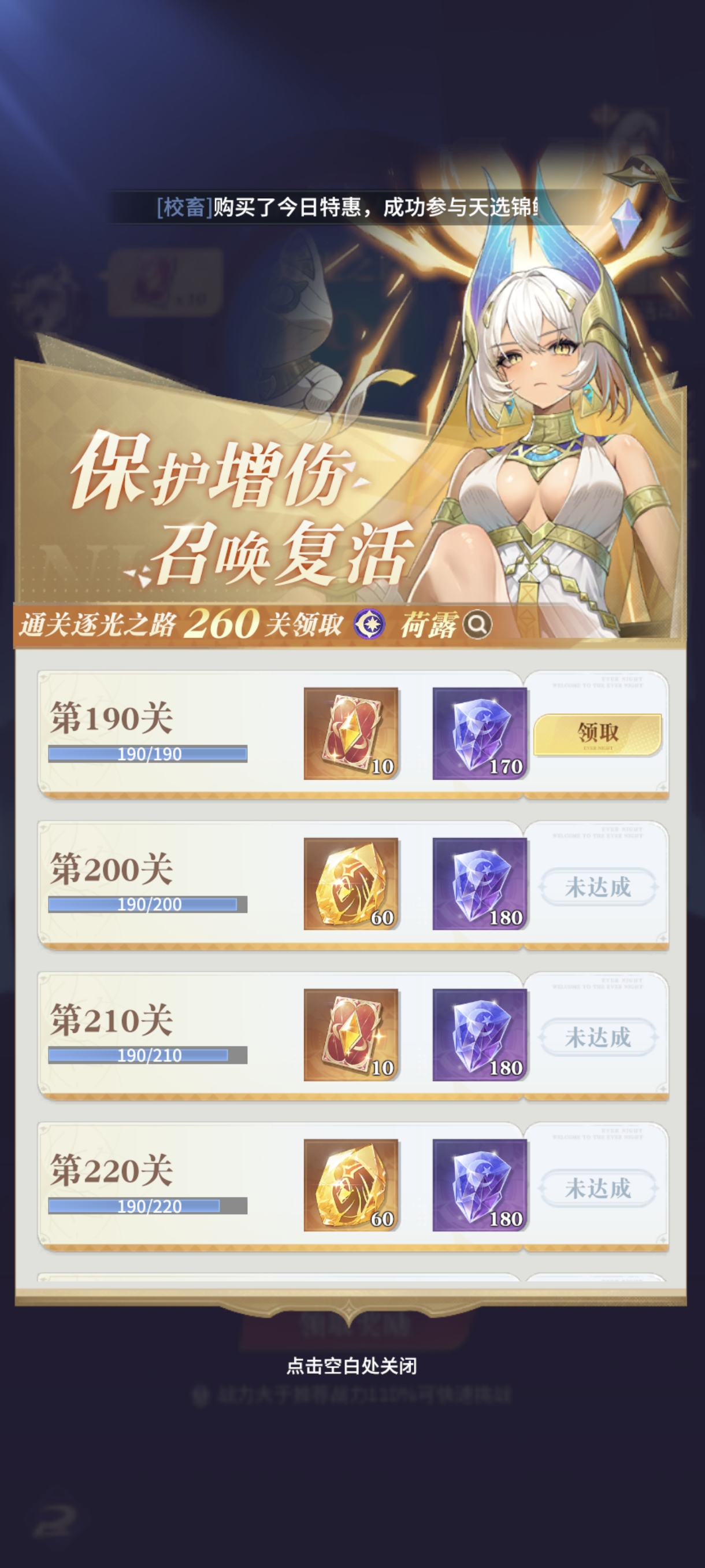 水晶池累抽130送的辅助自选箱继续开蕾娜,将蕾娜升到3星。