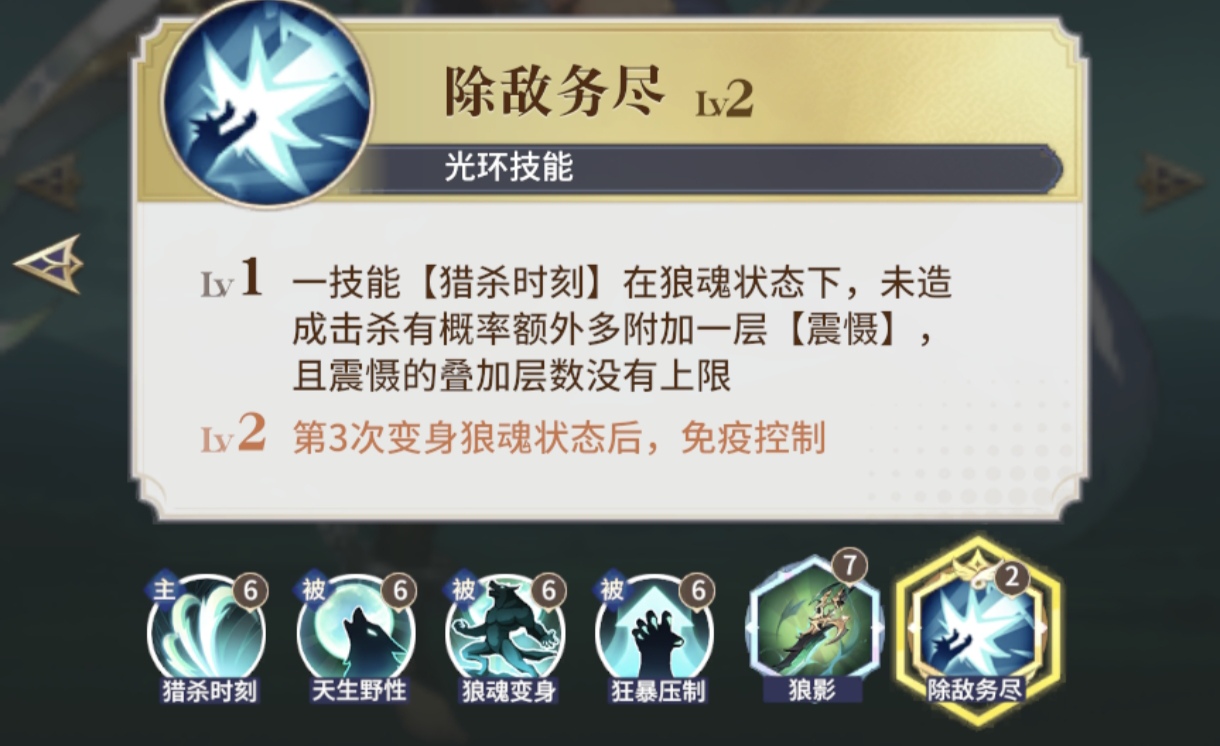 狼王的技能组合与龙女尼迪娅一样,都只有一个无冷却的主动攻击技能,其他全是被动技能。