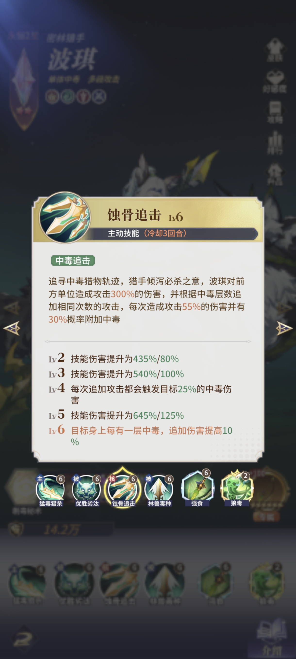 丛林阵营(此后简称木系)以长线持续输出见长,主要分为狼王成长流和毒伤DOT流两种输出体系。