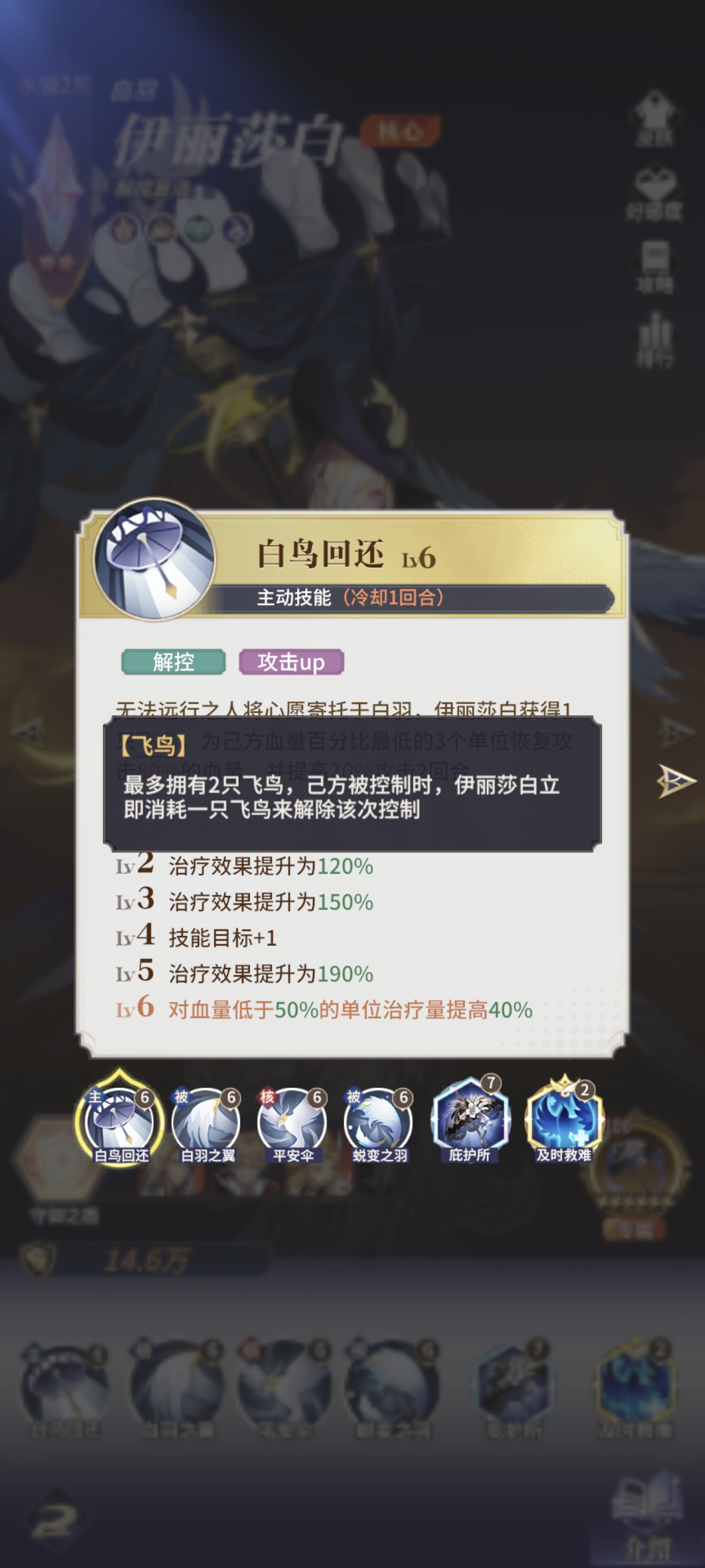 并且艾尔能跟伊丽莎白激活羁绊【守御之盾】,增加格挡几率就是增加伊丽莎白获得【飞鸟】的频率。