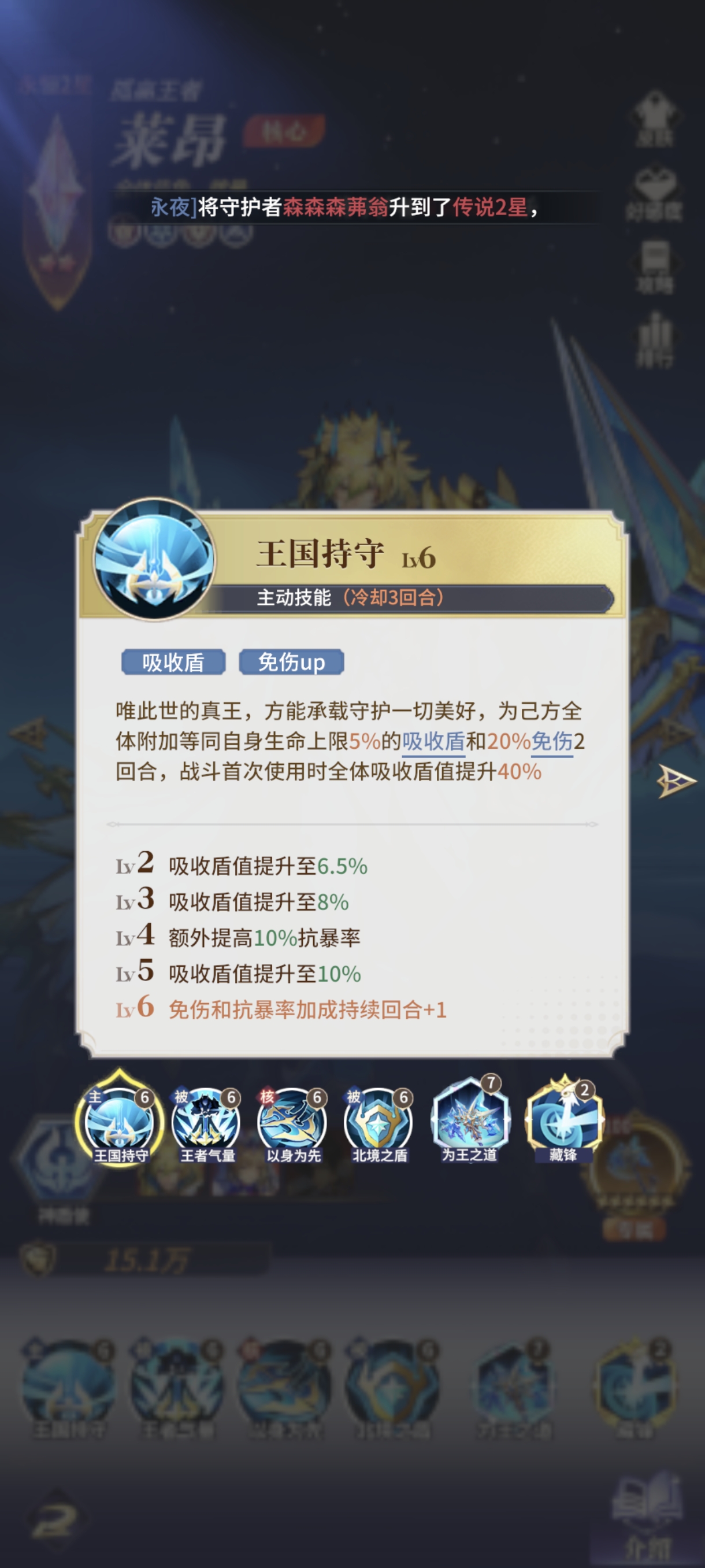 狼王自带变身解控,而没变身之前无论是否被控轮到他行动都会叠1层印记,所以不需要解控辅助配合,只要套盾撑坦度就行。